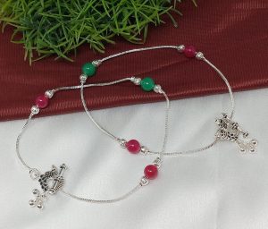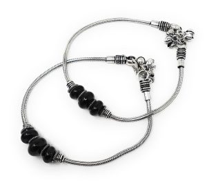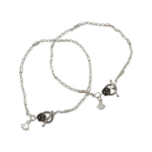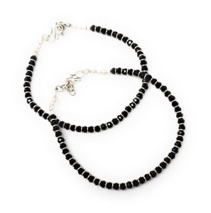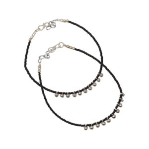 Enhance your ankle with the exquisite charm of this pair of silver chain anklets adorned with intricate black beads. Delicately strung along a beautiful silver chain, these anklets exude a captivating elegance, adding a touch of sophistication to any ensemble. Let your individual style shine as you flaunt these understated yet mesmerizing pieces that effortlessly…