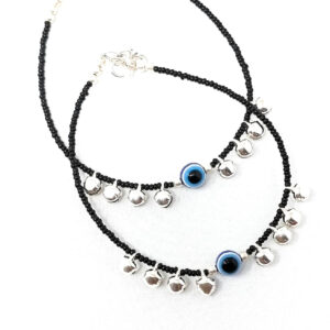 Stand out in style with these fashionable eye protection Ghungroo chain anklets. Crafted in eye-catching silver, they will add grace and elegance to any outfit. Perfect for all occasions, these stylish anklets will make you feel both beautiful and protected.