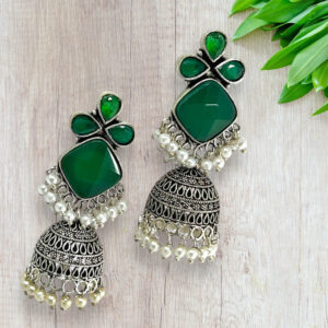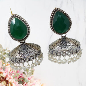 Step into the world of tradition and style with our German Silver Oxidized Jhumka Earrings. Perfect for adding a cultural flair to your look, these earrings are a fusion of heritage and contemporary design.