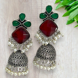 Discover the Perfect Accessory: German Silver Oxidized Earrings, Versatile and Stylish. Find your ideal pair of earrings with our stunning collection. Made with intricate detailing and a captivating oxidized finish, these earrings effortlessly elevate your style. Whether it’s a special event or a day out, they are designed to complement any outfit.
