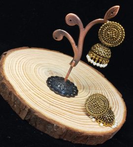 Our Oxidized Gold Plated Metal Jhumki Earrings feature a classic design made with gold plated metal for a unique, eye-catching look. Crafted with premium materials, these earrings are sure to stand out in any jewelry collection.