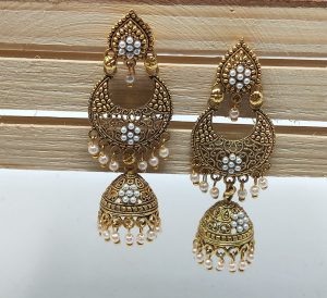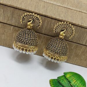 Introducing our exquisite collection of Traditional Golden Jhumka Earrings. These timeless pieces capture the essence of elegance and add a touch of regal charm to any outfit. Handcrafted with intricate detailing, our jhumkas are a true testament to traditional craftsmanship. Elevate your style with these captivating treasures