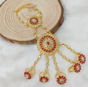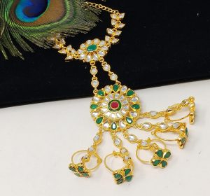 Take the plunge and let your style sparkle with our Gold Plated Kundan Hath Panja Ring Bracelets. Luxuriously crafted and elegantly designed, these bracelets sparkle and shine – daring you to make a statement! Ready for a dazzling adventure? Start here!