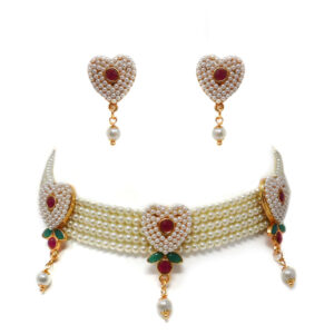 Experience a poetic allure with our luxurious handcrafted gold plated white green pearl choker jewelry set. Adorned with exquisite pearls and bedecked with timeless gold, this jewel set will make you stand out with its elegance and craftsmanship, reflecting the unforgettable chapters of your life.