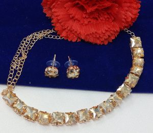 This Diamond Adorned Choker Necklace Set is sure to add a touch of sparkle to any ensemble. The choker features delicate diamond accents for a subtle yet luxurious feel. Perfect for any special occasion or simply to add some extra glamour to an everyday look.