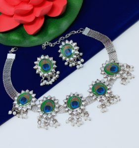 This Oxidized German Silver Necklace is perfect for everyday wear. Crafted from brass material, it guarantees durability and long-lasting quality without losing its original luster. Get yours today!