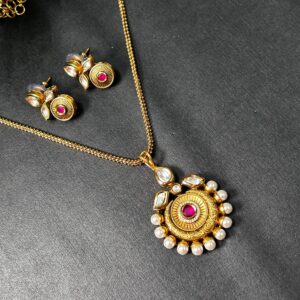 Product Highlights: Ideal for daily wear and traditional functions Versatile pieces that enhance any outfit Timeless designs for a touch of sophistication Crafted for comfort and long-lasting wear Key Features: High-quality pearls and vibrant Kundan detailing Striking pendant and coordinating earrings Versatile for both formal and casual occasions Crafted with precision and care Timeless elegance…