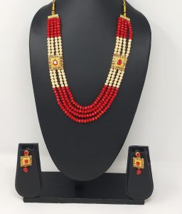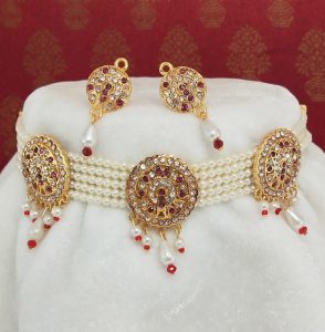 This Traditional Red Pearl Polki Kundan ChokerJewelry Set is an exquisite piece of luxury crafted with premium materials to form a unique and timeless piece of jewelry. Featuring a lustrous pearl polki kundan with intricate designs, this choker set is a statement-making choice for any special occasion.