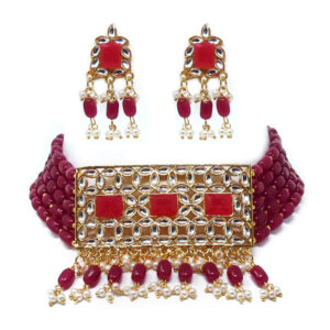 Indulge in the grace and beauty of our Graceful Pink Pearl Kundan Choker Jewelry Set. Meticulously crafted, this set combines the elegance of pink pearls with intricate Kundan detailing. The choker necklace and matching earrings exude a timeless charm and sophistication. Elevate your style and embrace the allure of this exquisite jewelry ensemble.