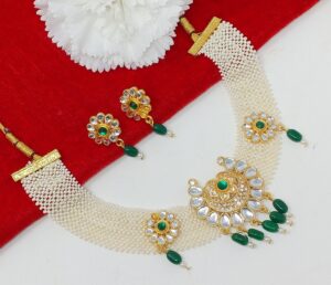 Introducing our enchanting Pearl Choker Set, a symbol of refined elegance and classic beauty. This exquisite ensemble features a stunning choker necklace adorned with lustrous pearls that gracefully accentuate your neckline.