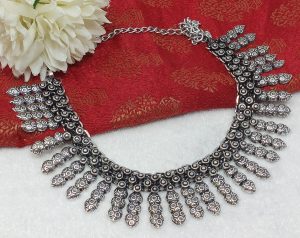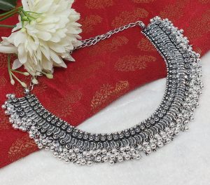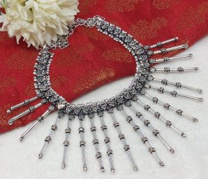Step into a world of refined beauty with our German Silver Oxidized Necklace. Meticulously crafted, this necklace seamlessly marries tradition and modern aesthetics, creating a piece that transcends time. The oxidized finish lends a touch of vintage sophistication, making it a captivating addition to your jewelry collection.