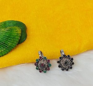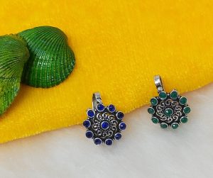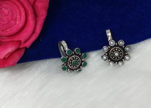 Introducing our Oxidized Silver Indo Western Fashion Jewellery Nose Pin. Crafted with precision from oxidized silver, this versatile accessory beautifully combines traditional charm with contemporary style. With intricate detailing and a darkened silver finish, it adds an elegant touch to any outfit, making it the perfect choice for weddings, festivals, or everyday wear. Elevate your…