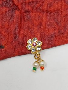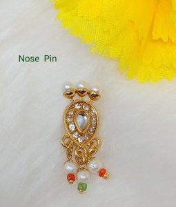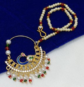 “Introducing the exquisite gold-plated nose pin nathni with a pearl chain, a fusion of tradition and contemporary elegance. This stunning piece of jewelry is meticulously crafted with a delicate nose pin, adorned with intricate gold plating that exudes a regal charm. The nose pin is complemented by a graceful pearl chain that gracefully drapes along…