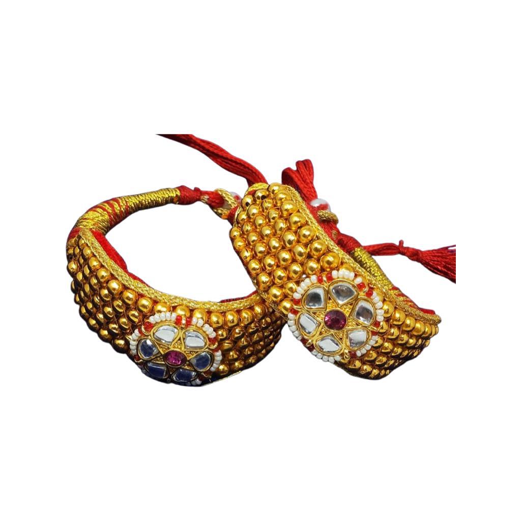 This authentic Rajputi Punsi Pocchi Hand Bracelet stands out with its intricate design and delicate craftsmanship. Made of carefully selected materials, this elegant bracelet adds style and sophistication to any look. With its balanced weight and comfortable fit, you can be sure to embrace your Rajputi look with confidence.