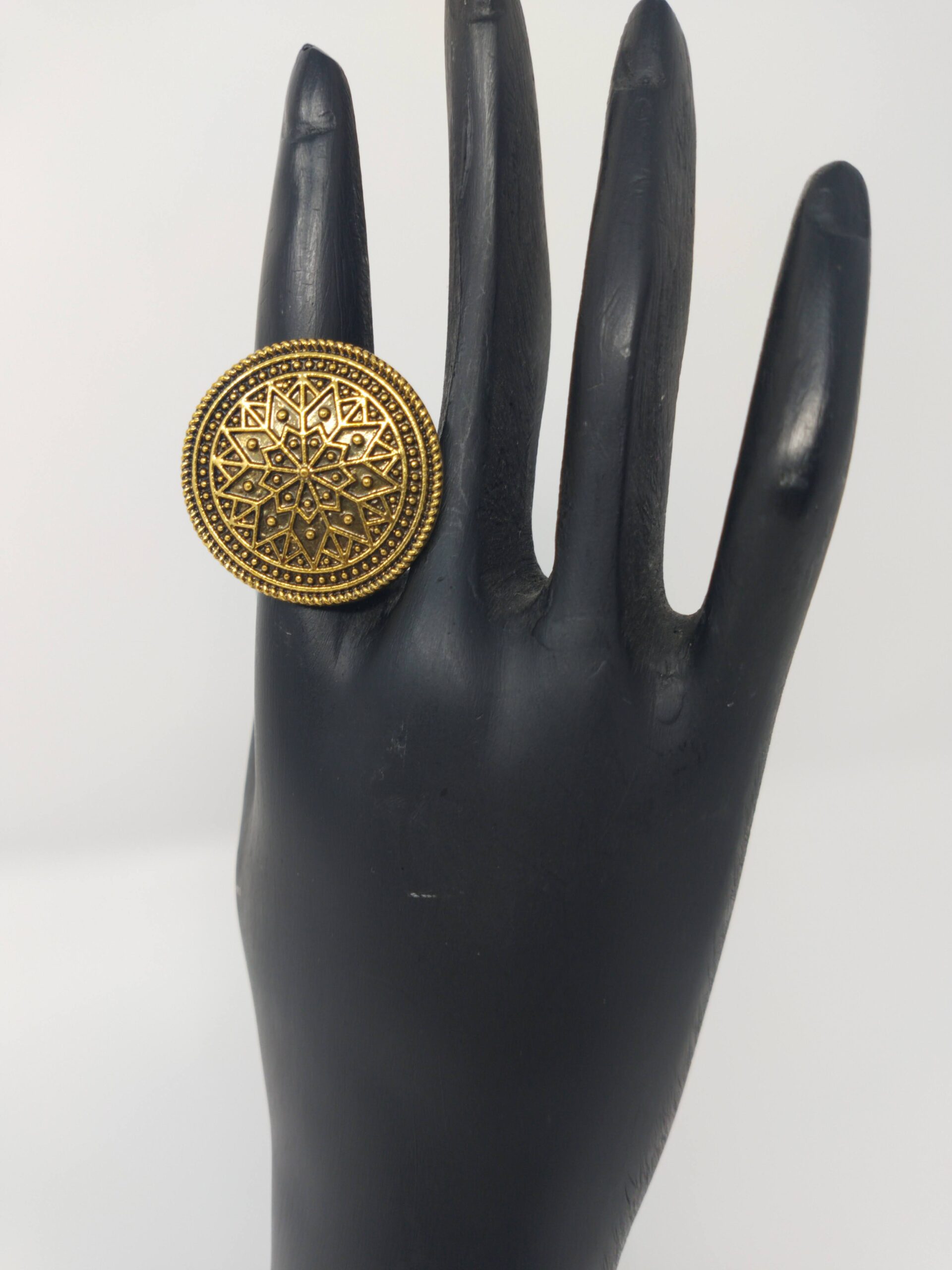 This Antique Charm Gold Oxidized Finger Ring is a timeless accessory that will add the perfect touch to your ensemble. Featuring a beautiful gold oxidized finish, the ring is sure to make you feel elegant and stylish.