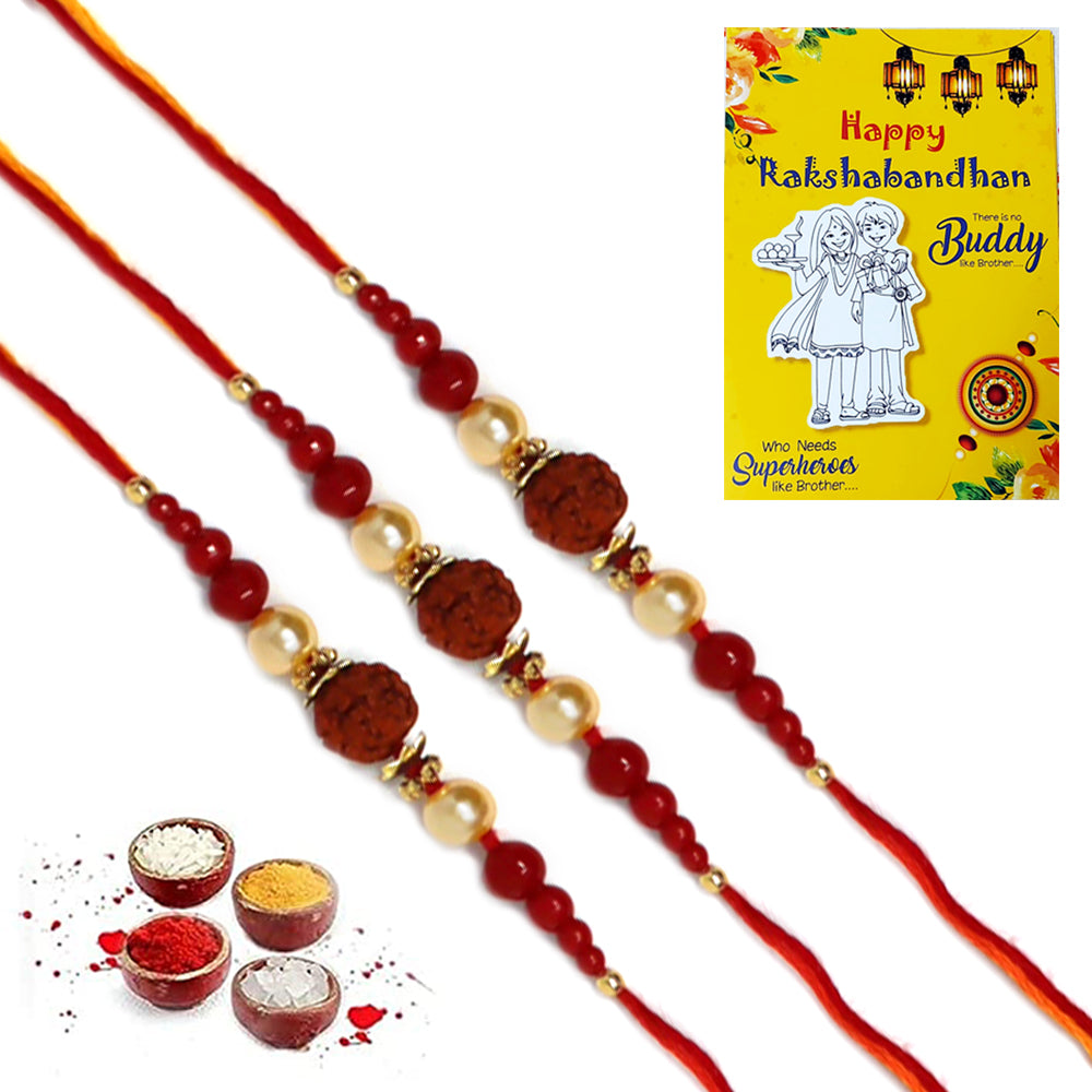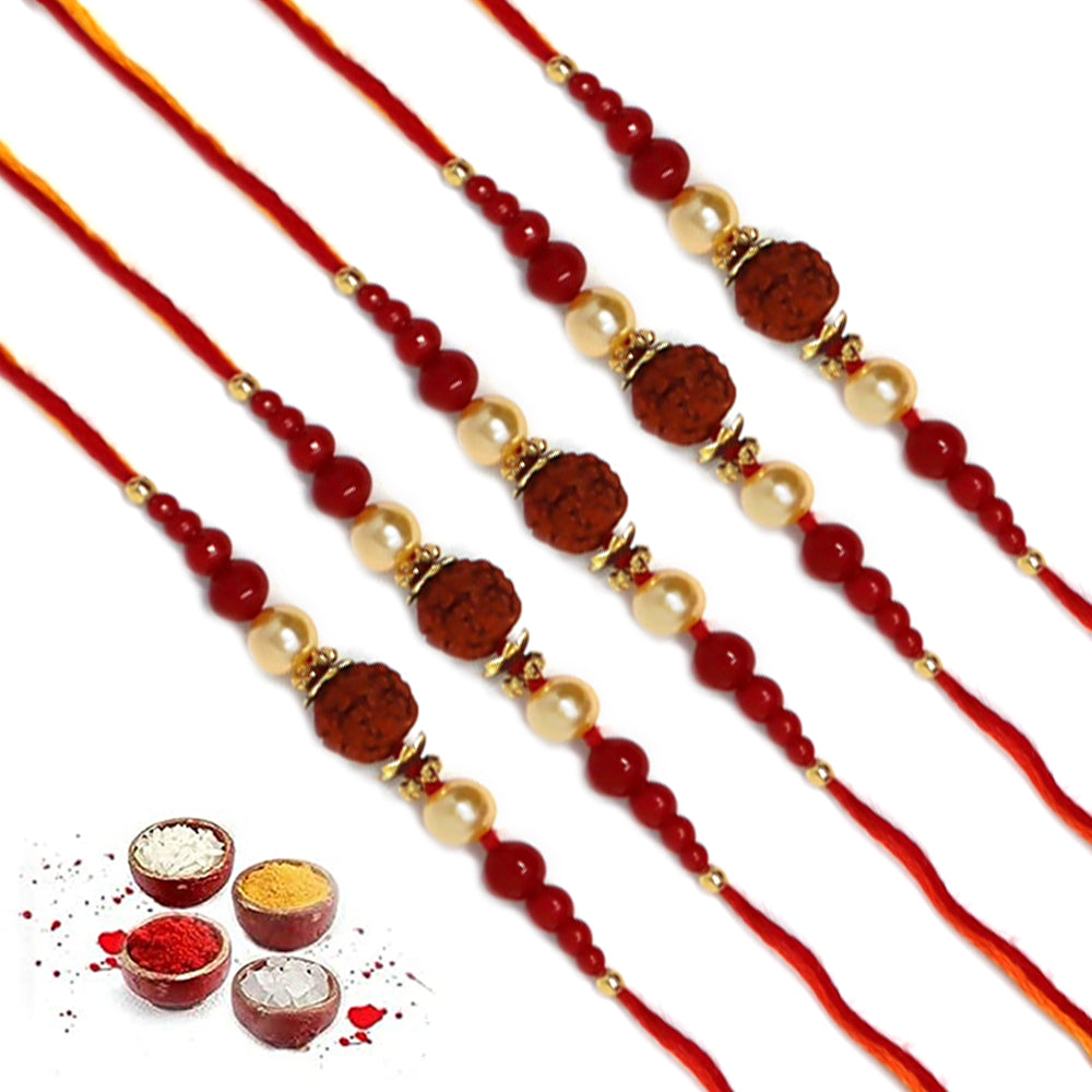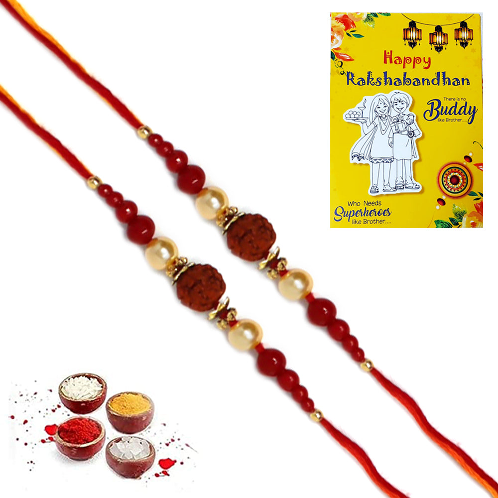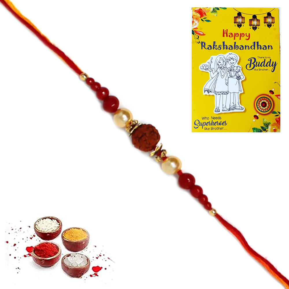Big Single Rudraksh Red Pearl Rakhi for Brother