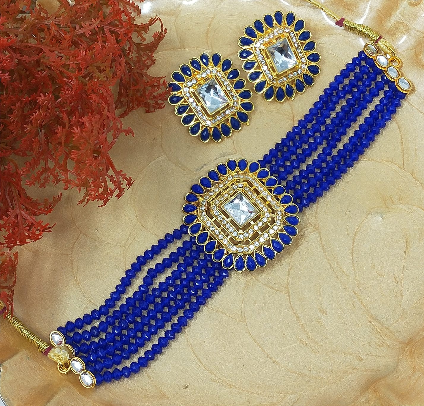 Gorge up your neckline with this Blue Pearl Choker Square Pendent Jewelry Set. Make a statement with its unique design and perfect fit. Get ready to shine like the night sky! Splendid and sparkling, it’ll make you glow wherever you go!