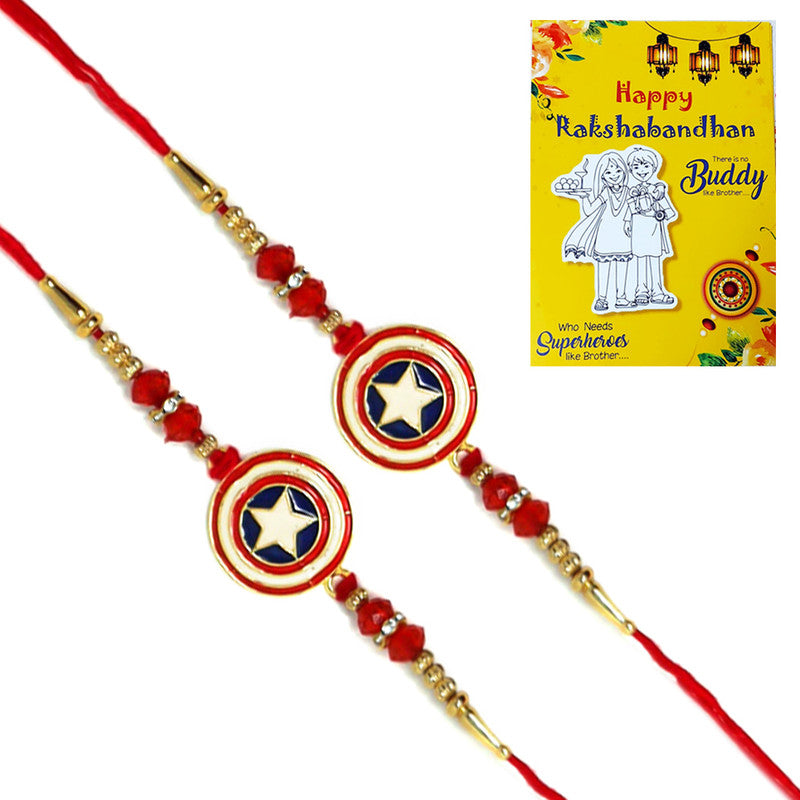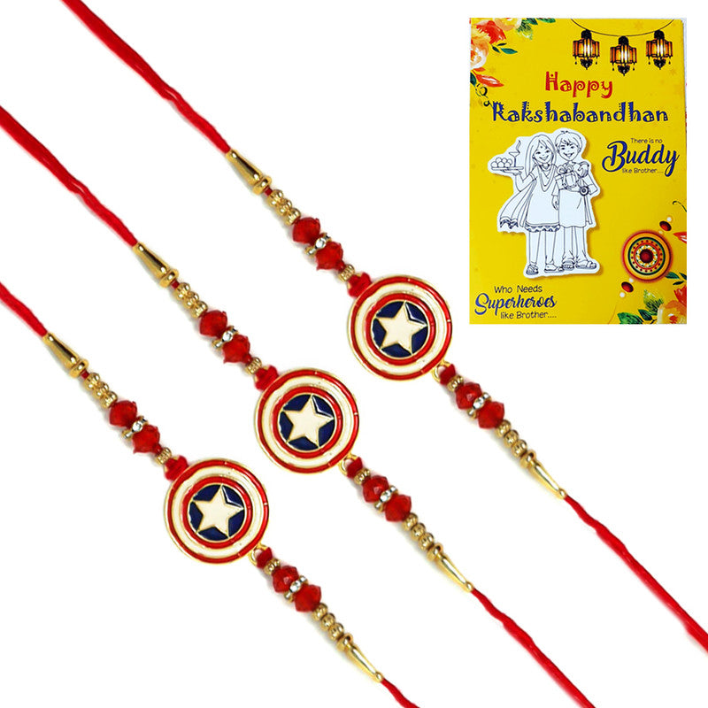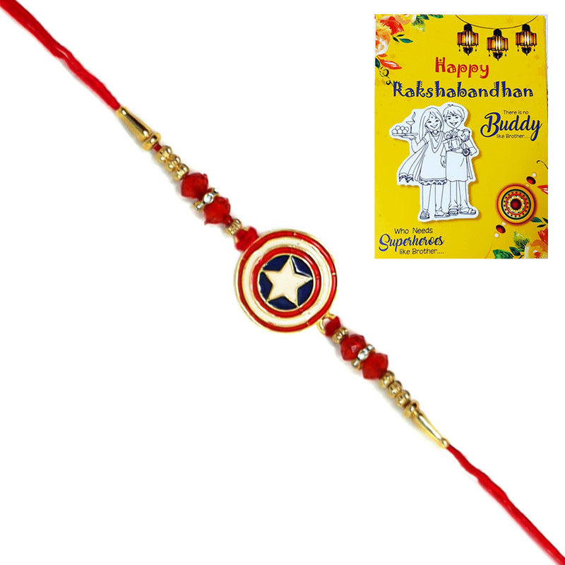 Discover the best buy Rakhi for kids with the iconic Captain America logo. Ideal for brothers who admire superheroes.