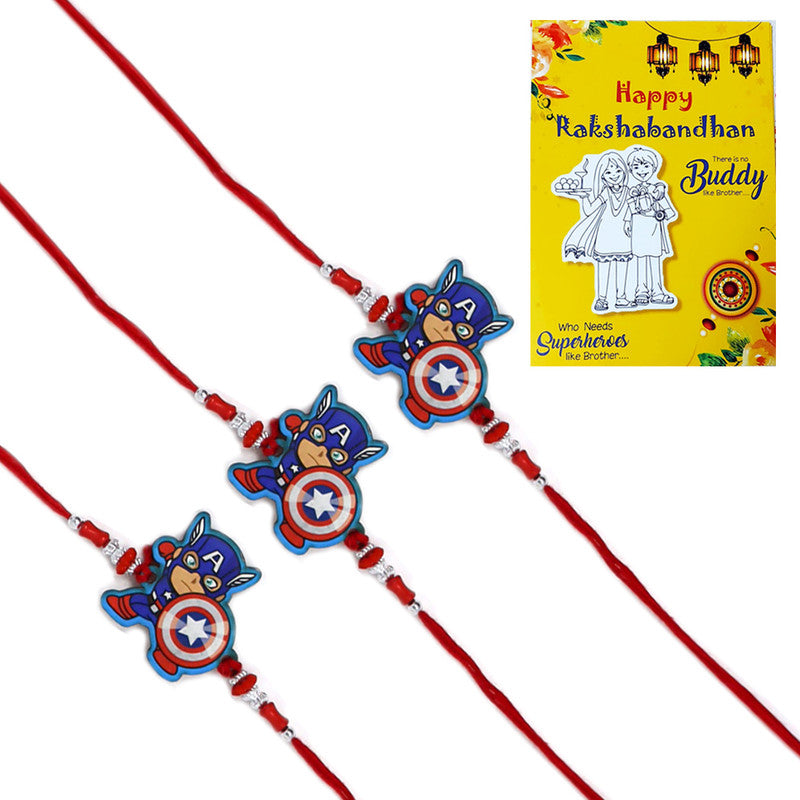 Celebrate the bond of siblings with a Captain America-themed Rakhi. Perfect for kids, this Rakhi is a patriotic and heroic addition to Raksha Bandhan.