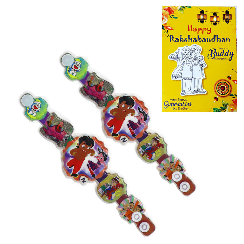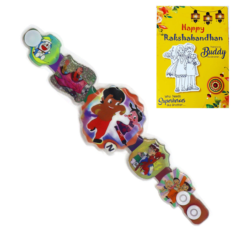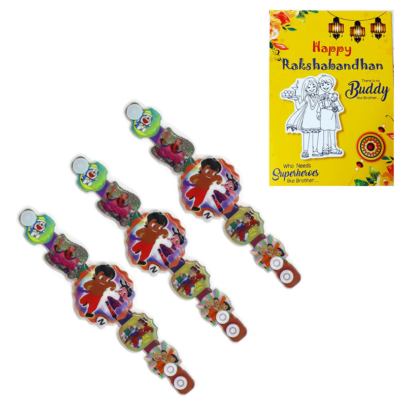 Best buy Rakhi for kids featuring Chota Bheem, Chutki, Doremon, and Spiderman themes. A perfect choice for multi-themed celebrations.