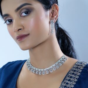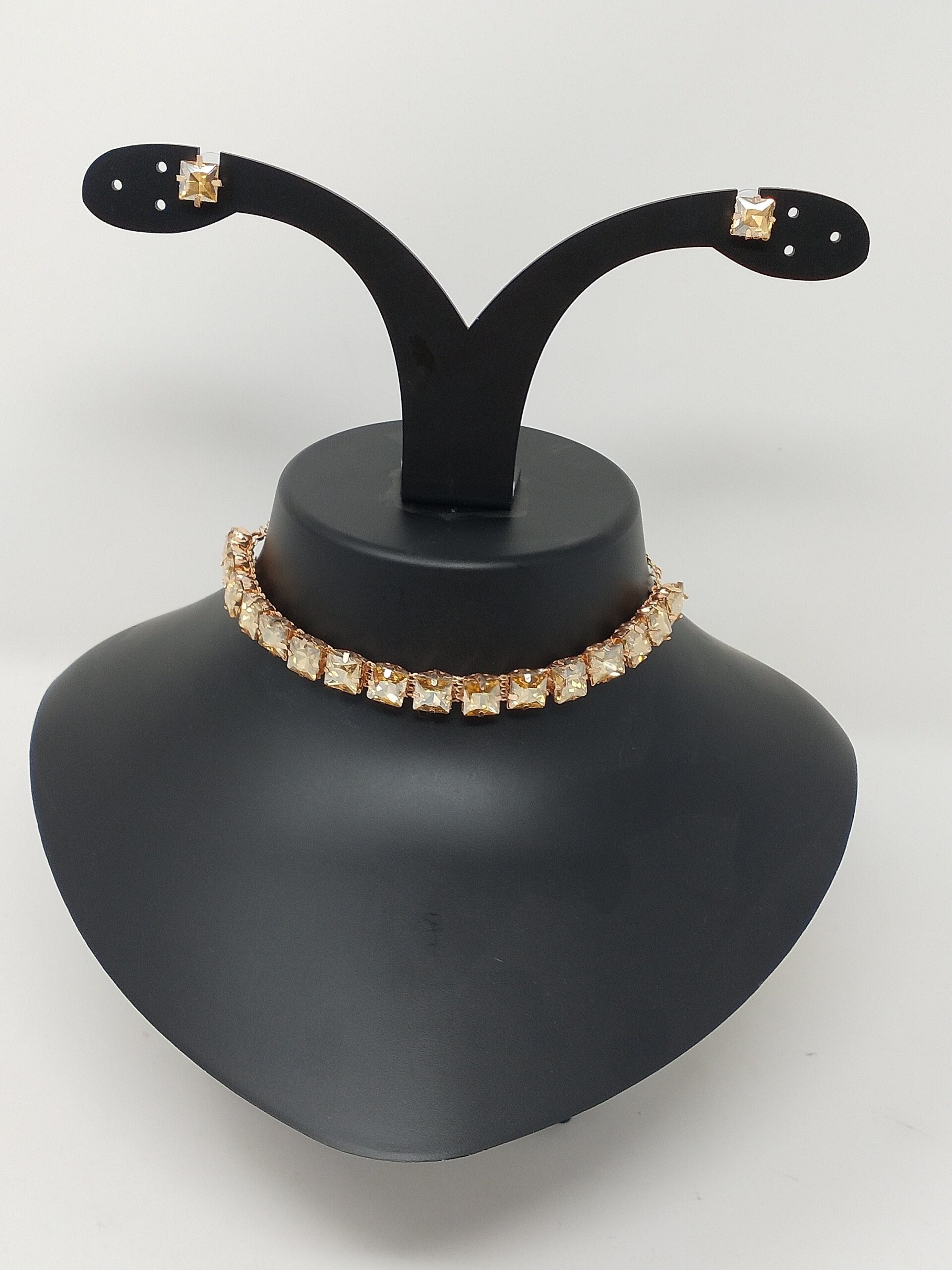 This Diamond Adorned Choker Necklace Set is sure to add a touch of sparkle to any ensemble. The choker features delicate diamond accents for a subtle yet luxurious feel. Perfect for any special occasion or simply to add some extra glamour to an everyday look.
