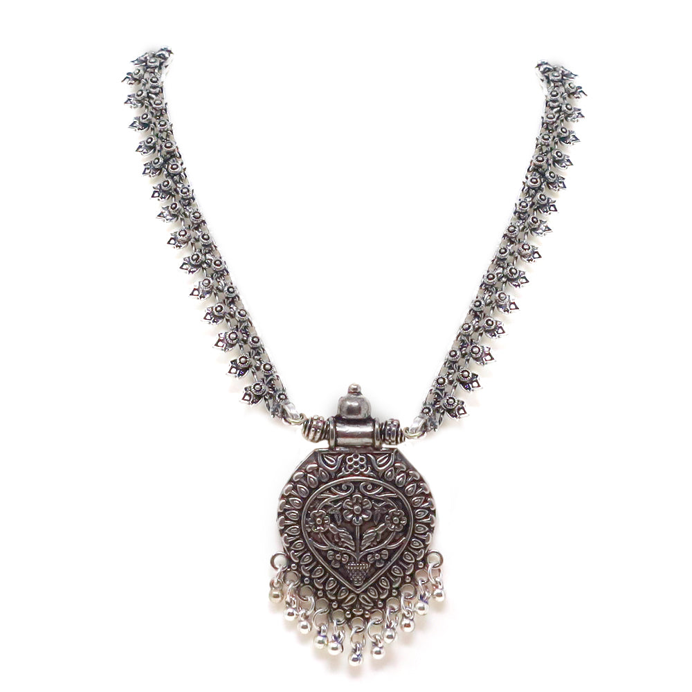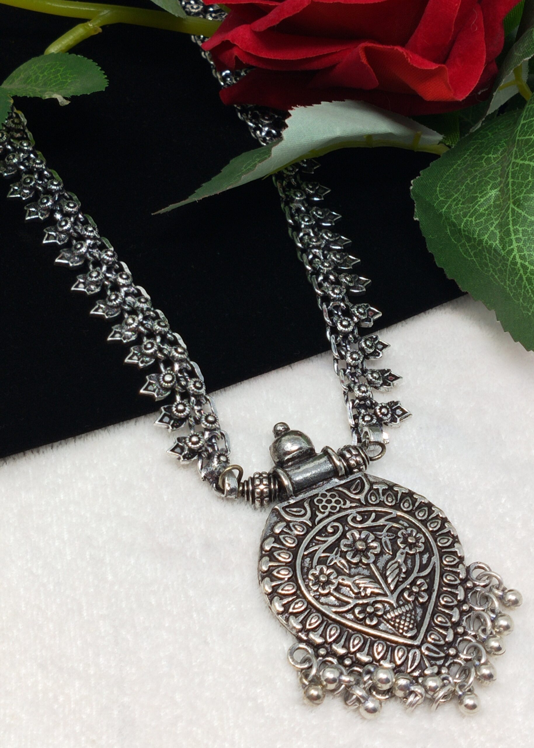 Introducing our exquisite “Everyday Elegance Brass Pendant Necklace” – a stunning piece designed to enhance your everyday style. This Oxidized German Silver Pendant Necklace is meticulously crafted from high-quality brass, ensuring exceptional durability and retaining its original luster for years to come.