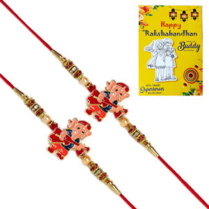Our Ethnic Zariwork Bhabhi Lumba Rakhi showcases intricate traditional craftsmanship. The rich, ethnic design combined with modern artistry creates a unique, handcrafted piece that celebrates cultural heritage while offering a touch of exclusivity.