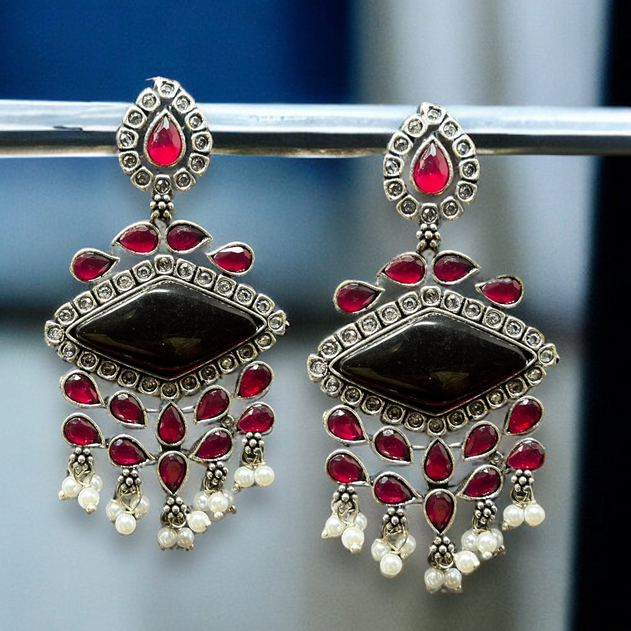 Elevate your Indian ethnic wear with our German Silver Dangler Earrings, blending timeless design with intricate craftsmanship. These lightweight earrings make a stylish statement, seamlessly complementing sarees and lehengas for both casual outings and formal occasions. Surprise a loved one with the gift of elegance, adding a timeless touch to their jewelry collection.