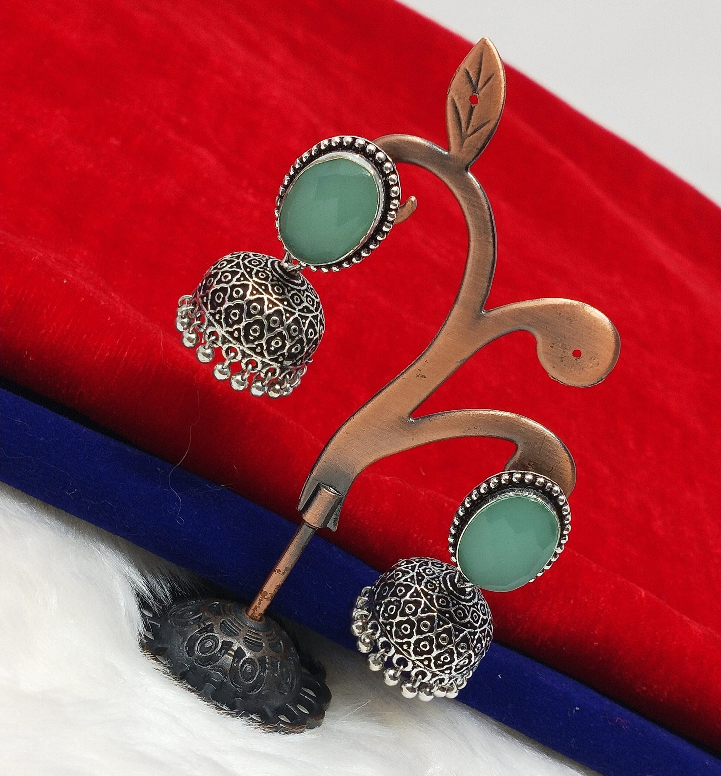 Elevate your style with the captivating German Silver Jhumkhi Earrings! These earrings are the perfect way to add a touch of boldness and festive charm to your daily look. With their vibrant colors and intricate design, they are sure to turn heads wherever you go. Embrace the confidence and sparkle that comes with making a daring fashion statement. Let these earrings be a reflection of your vibrant personality as you smile and shine your way through life.