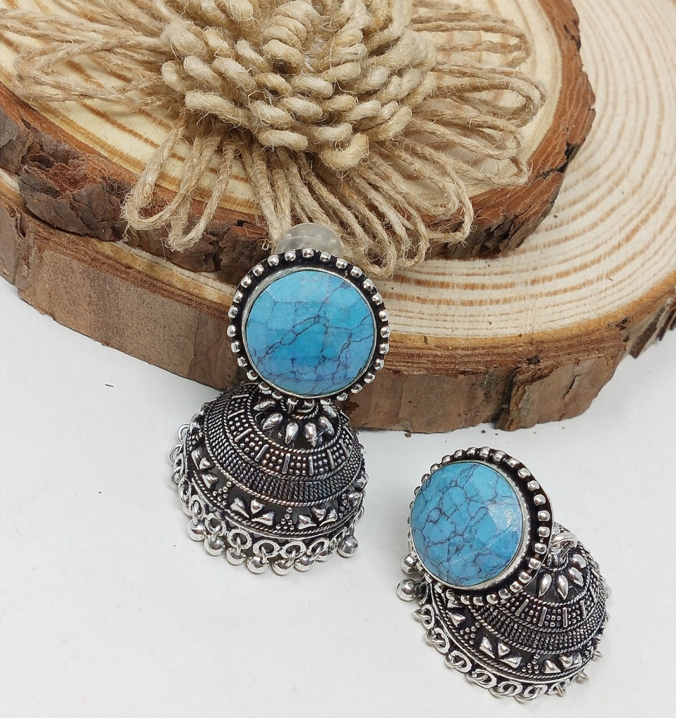 German Silver Oxidized Jhumka Earrings
