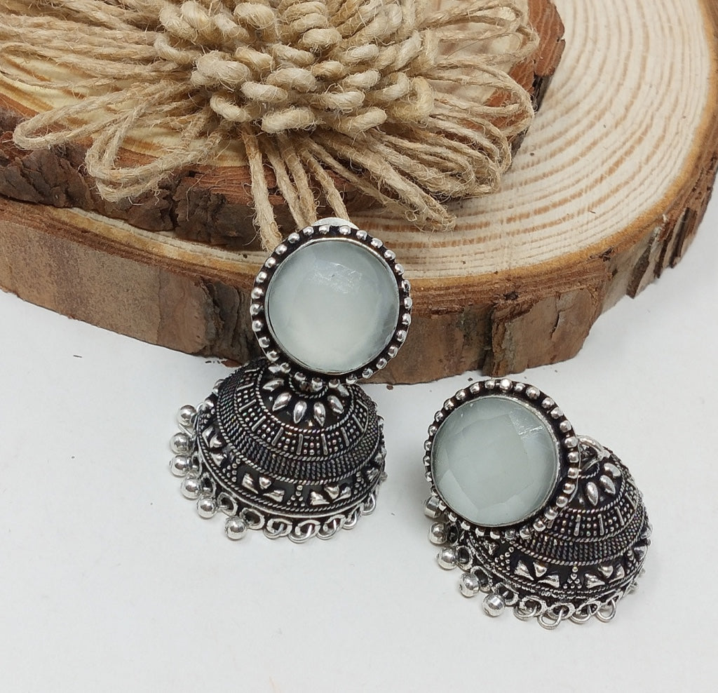 Elevate your style with the captivating German Silver Jhumkhi Earrings! These earrings are the perfect way to add a touch of boldness and festive charm to your daily look. With their vibrant colors and intricate design, they are sure to turn heads wherever you go. Embrace the confidence and sparkle that comes with making a daring fashion statement. Let these earrings be a reflection of your vibrant personality as you smile and shine your way through life.
