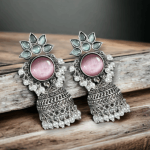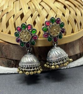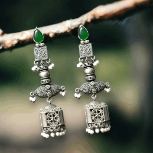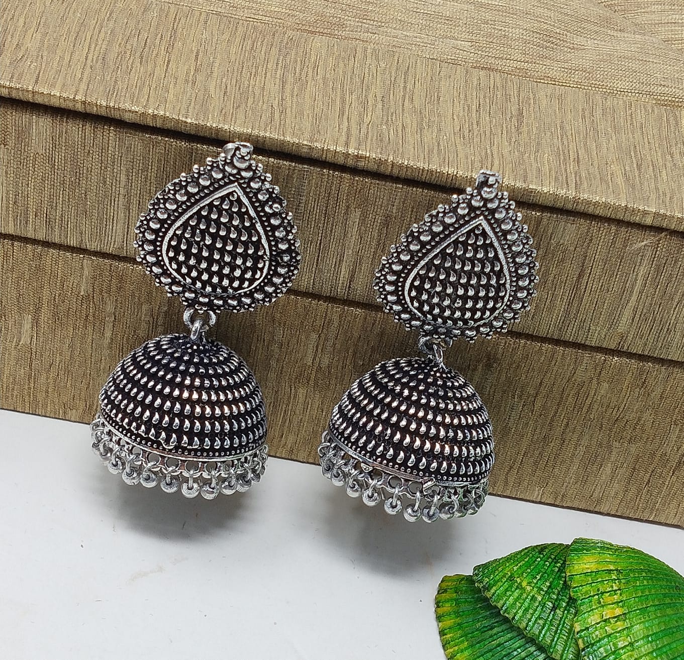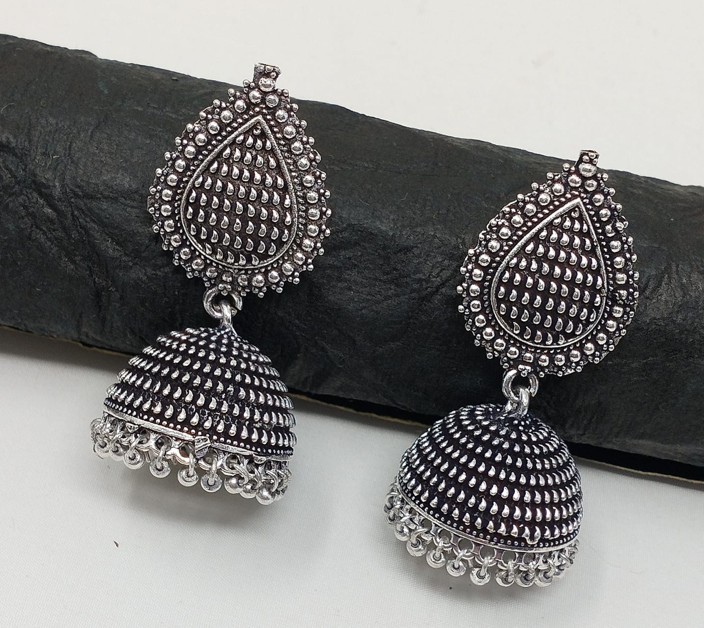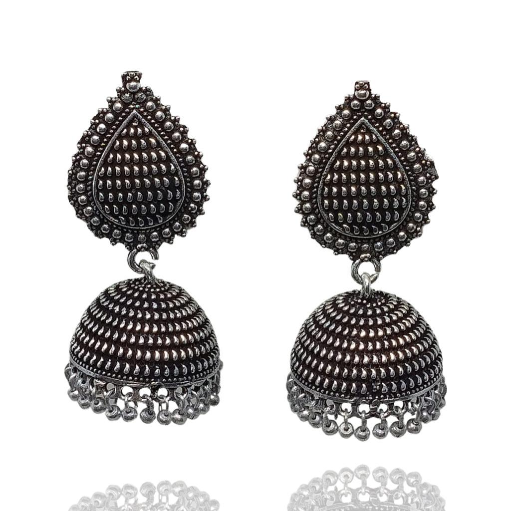 German Silver-Toned Bell-Shaped Jhumka Earrings