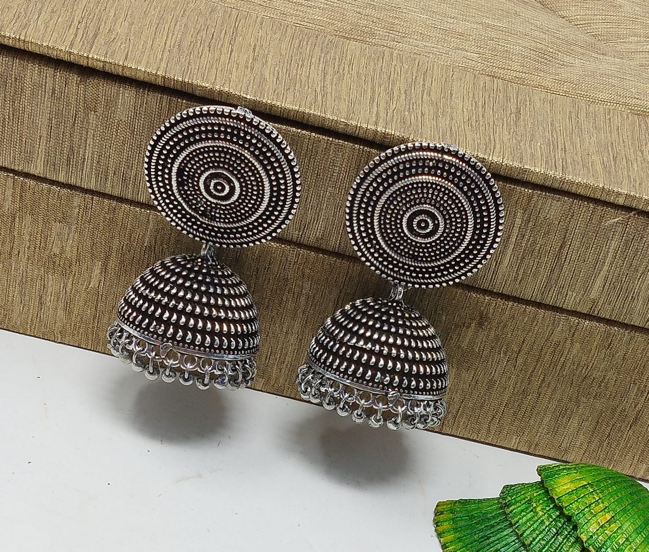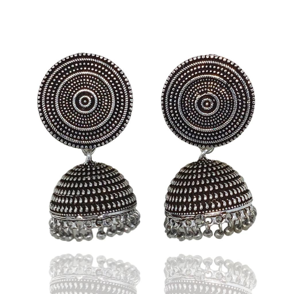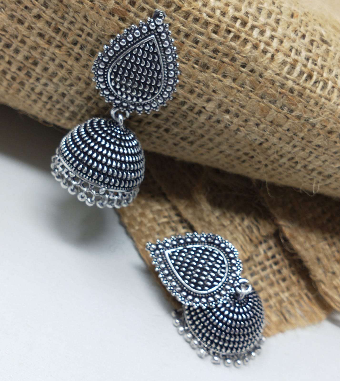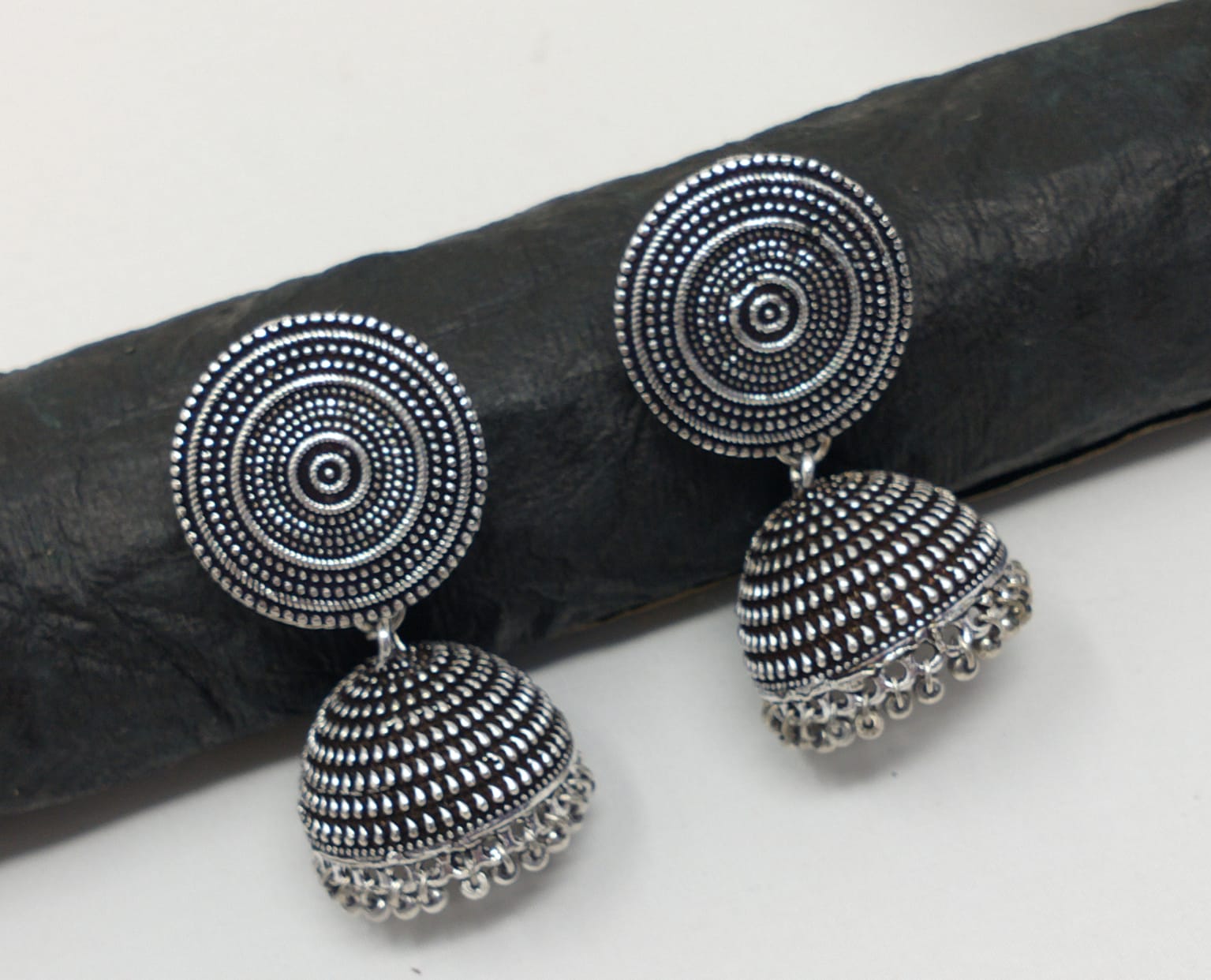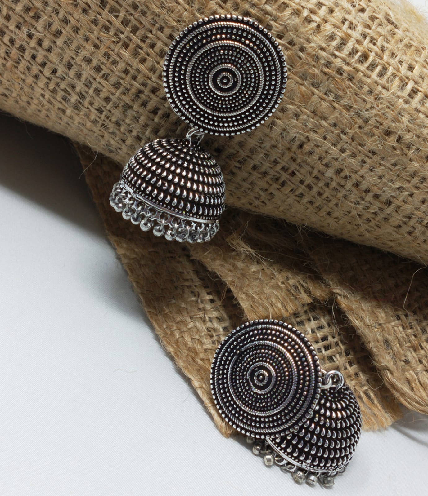 German Silver-Toned Bell-Shaped Jhumka Earrings