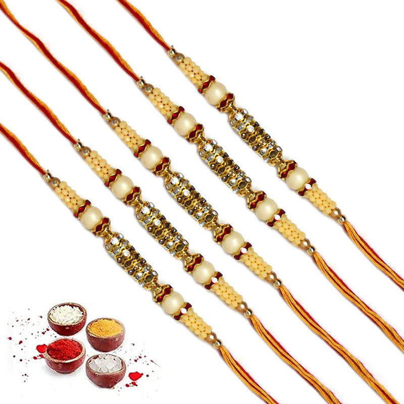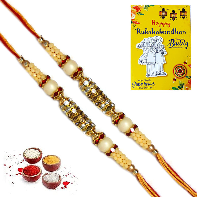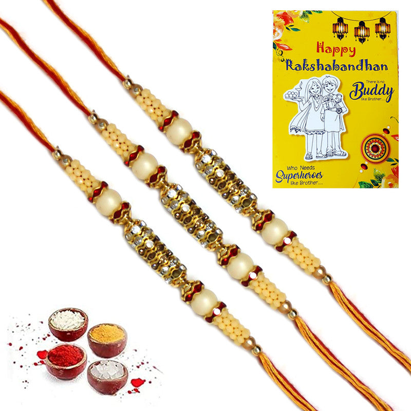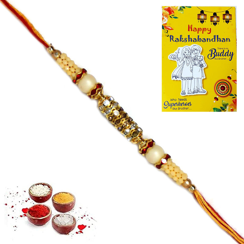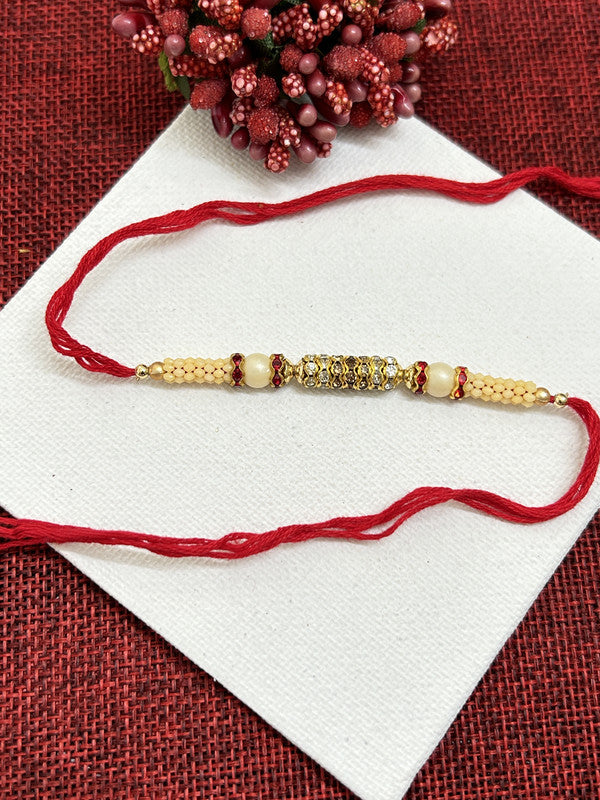 Golden AD Pearl Rakhi For Brother