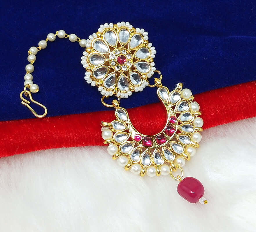 “Radiate Elegance with our Golden Maang Tikka. Crafted to Perfection, it Adds a Touch of Glamour to Every Look.”