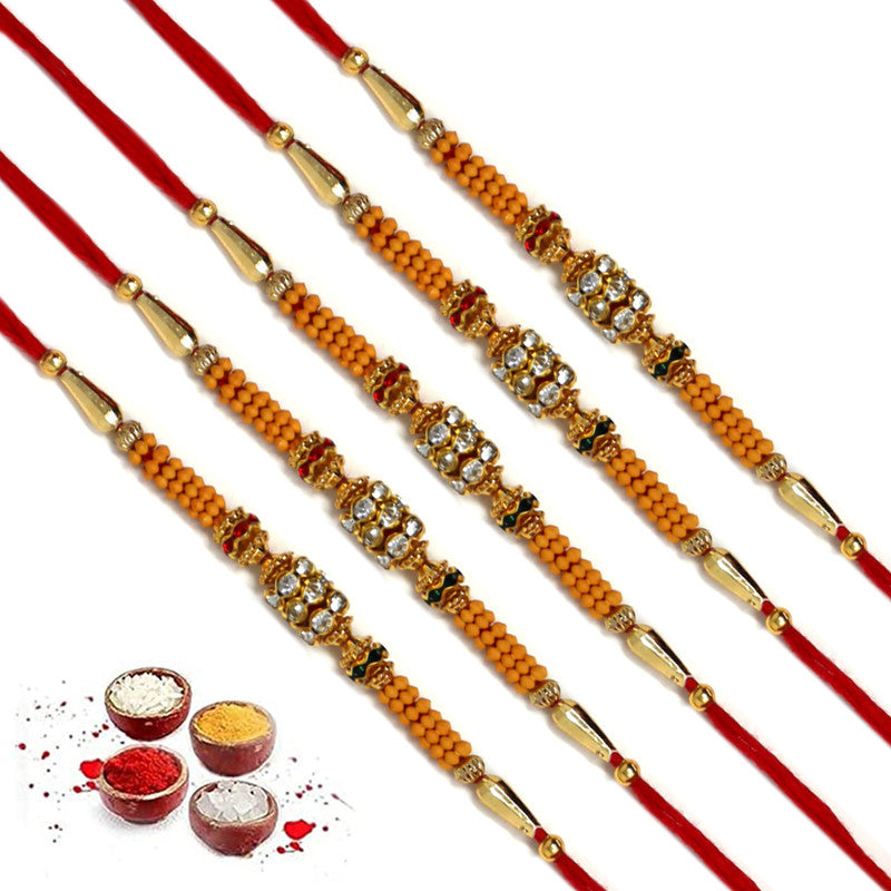Golden Red AD Stone Pearl Rakhi For Brother