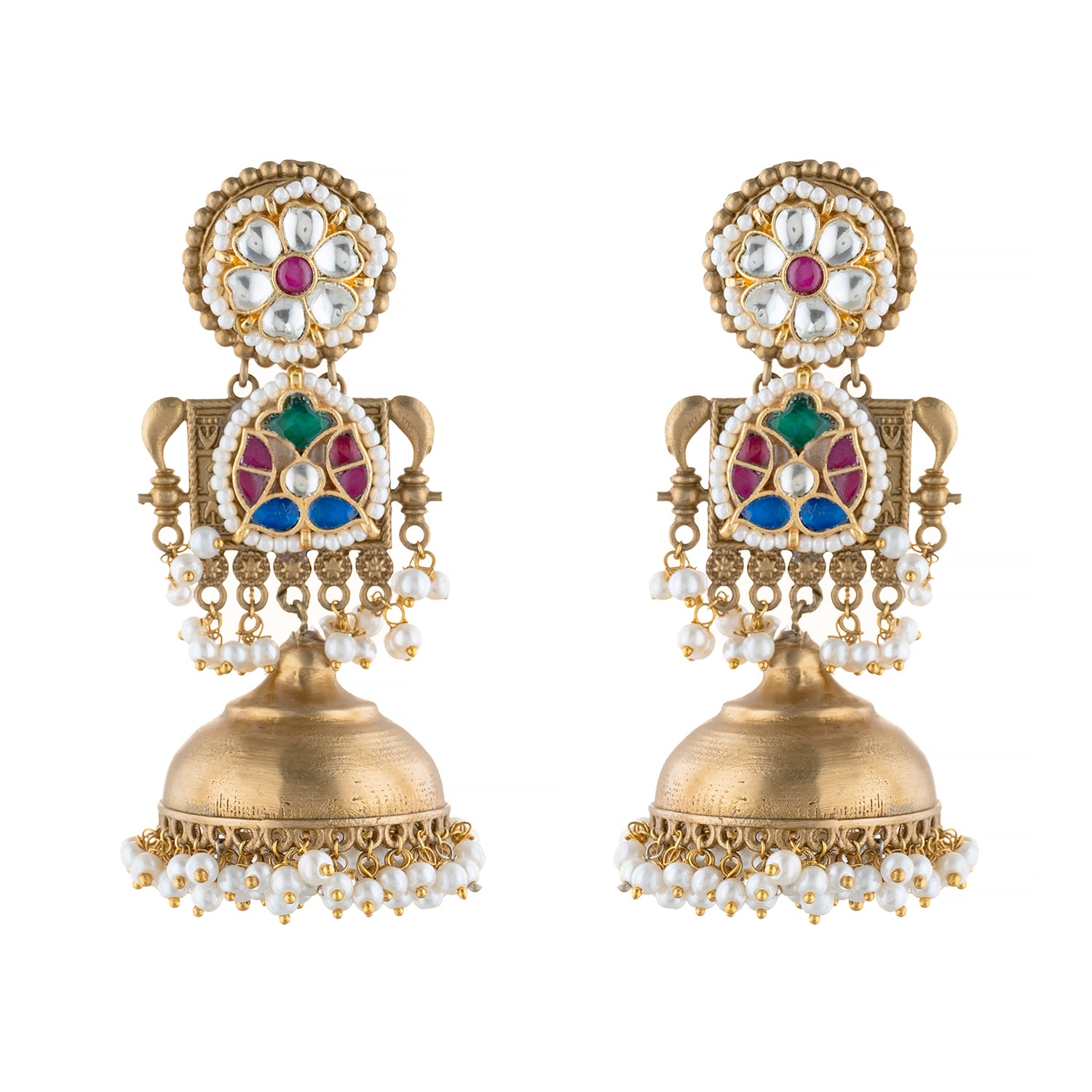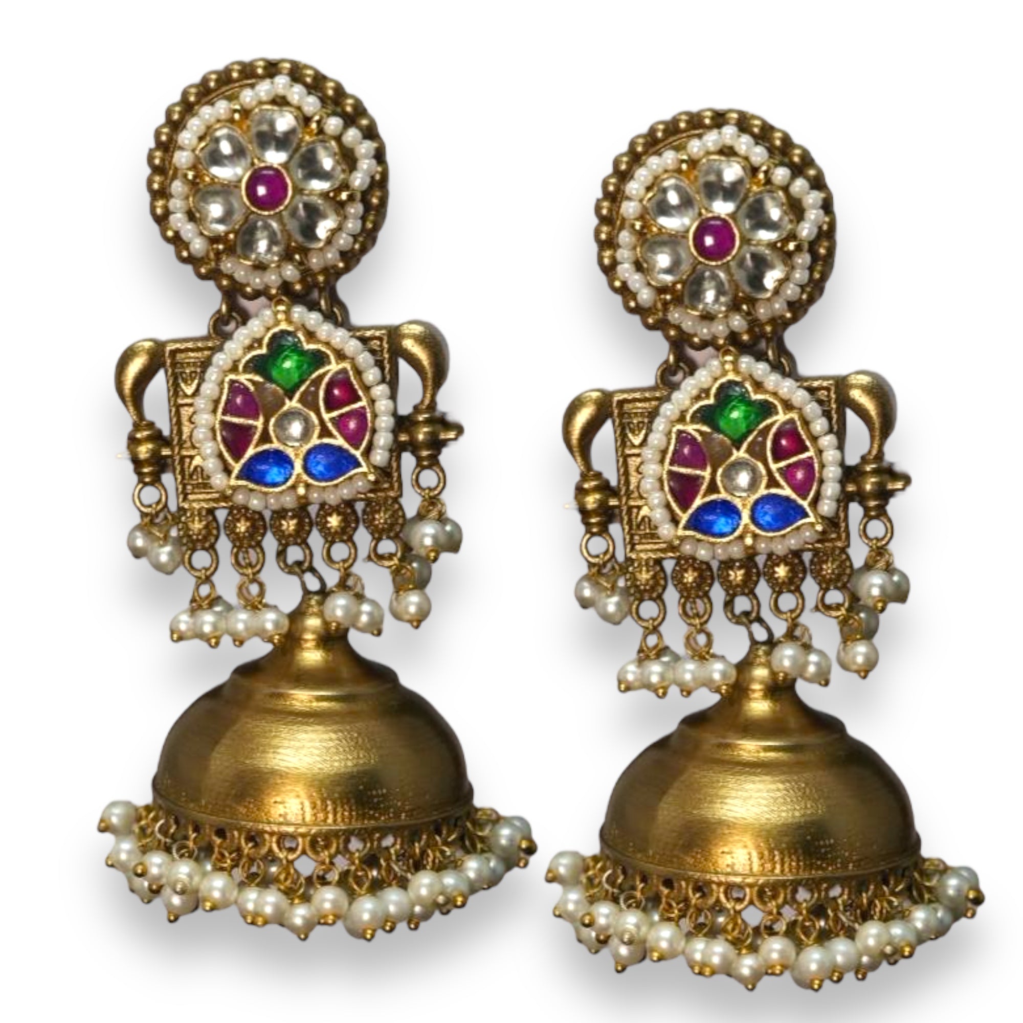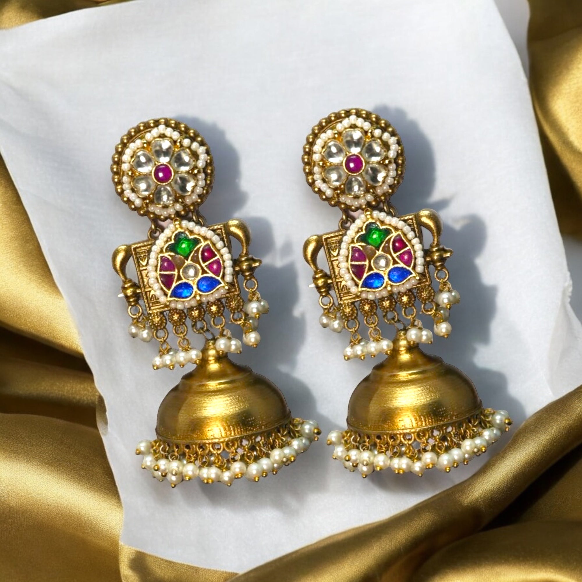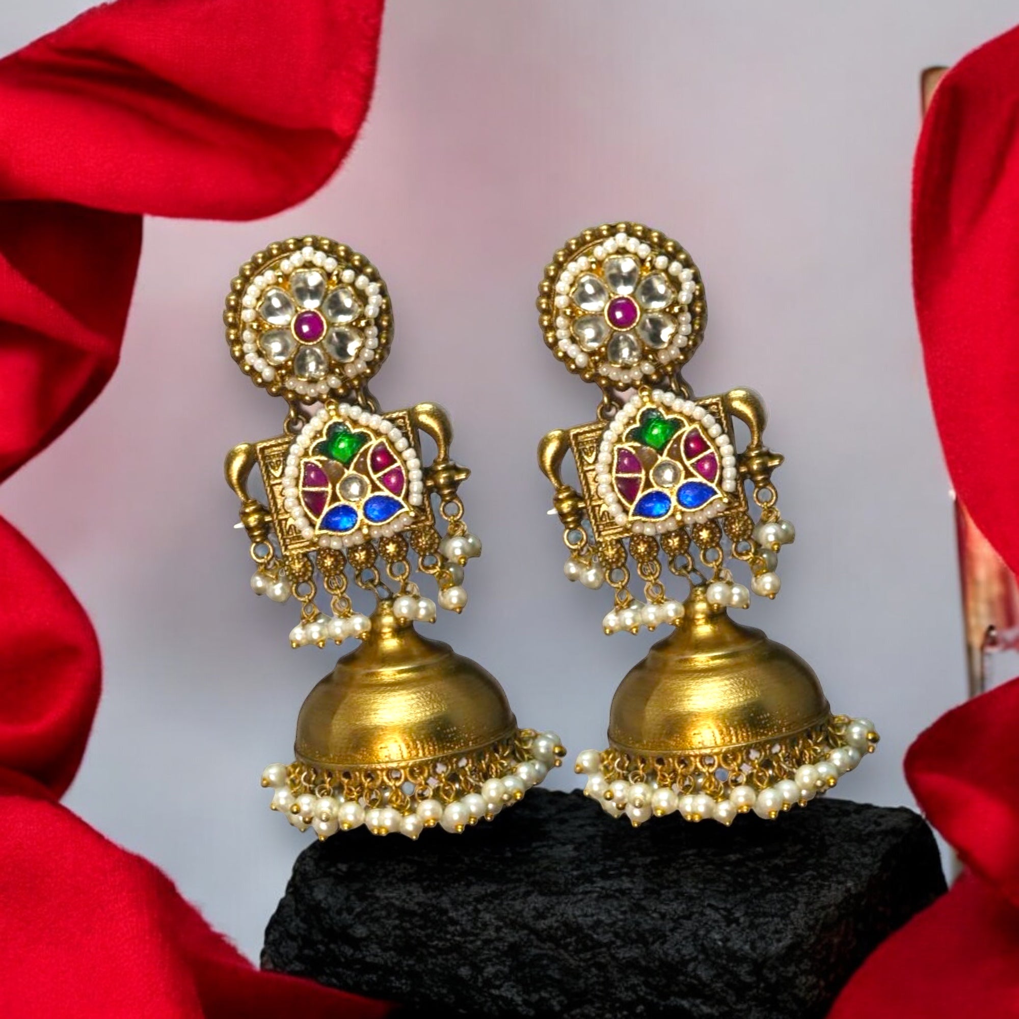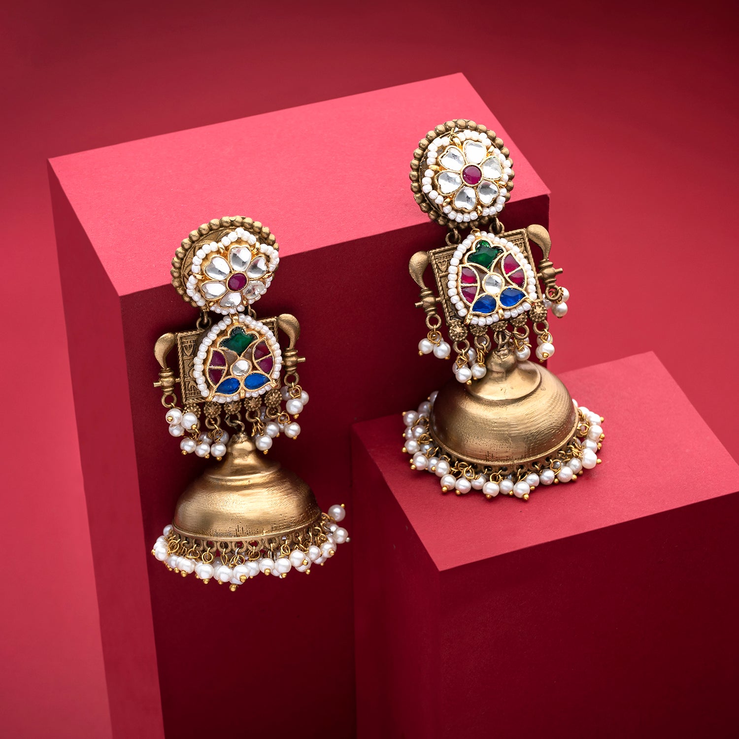 Hand Crafted Long Gold Plated Jhumka Earrings for Women and Girls