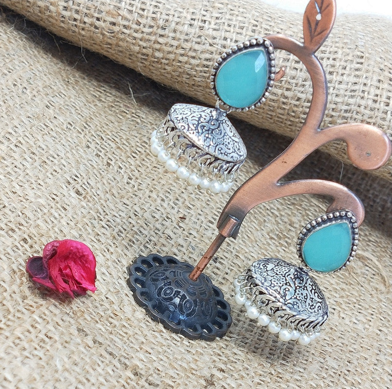 Embrace the artistry of our German Silver Oxidized Earrings, handcrafted to perfection for a touch of sophistication. Made from high-quality German silver with an enchanting oxidized finish, these earrings effortlessly elevate your style for any occasion.