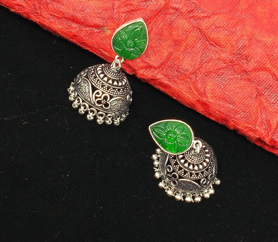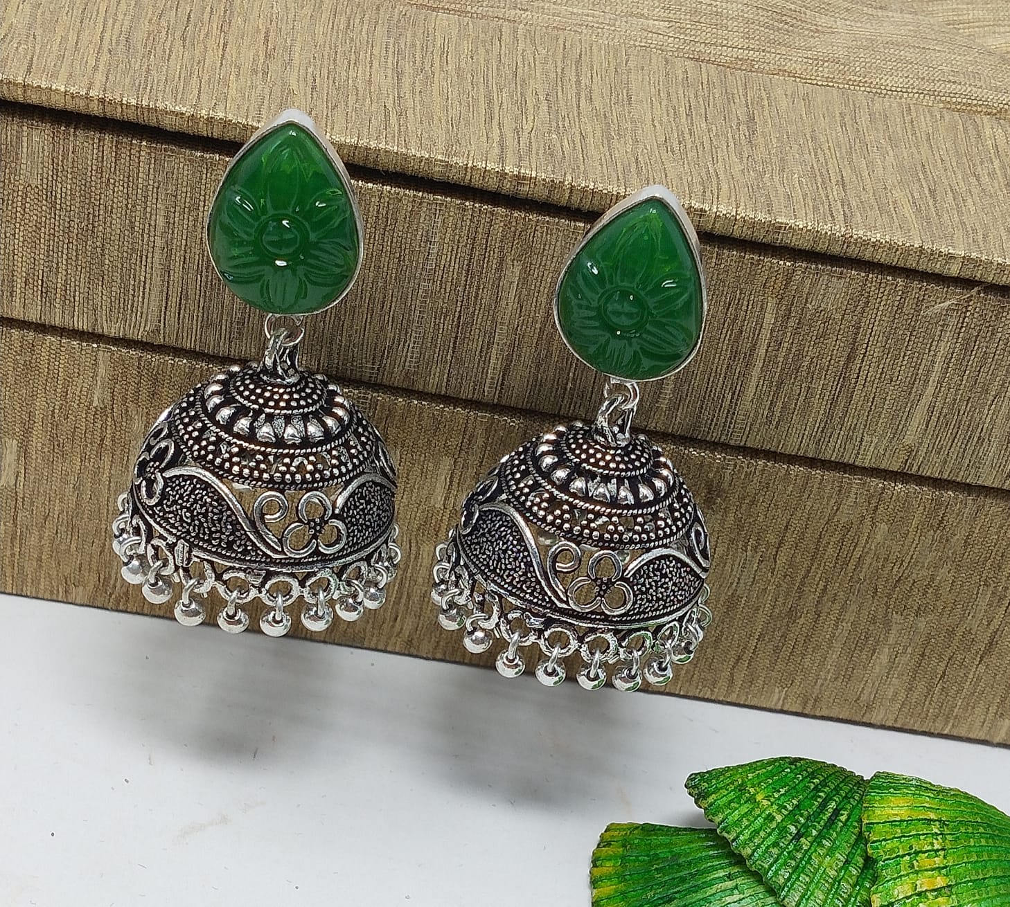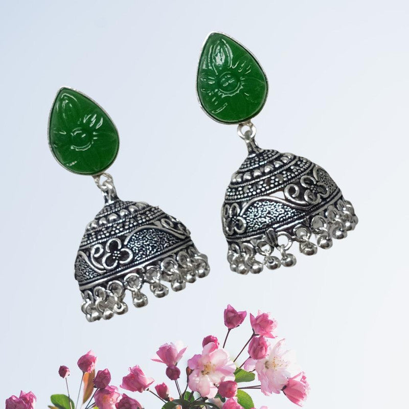 Discover the magic of our Gem Stone Jhumka Earrings, as they dangle gracefully, showcasing the brilliance of gemstones and reflecting your unique style.