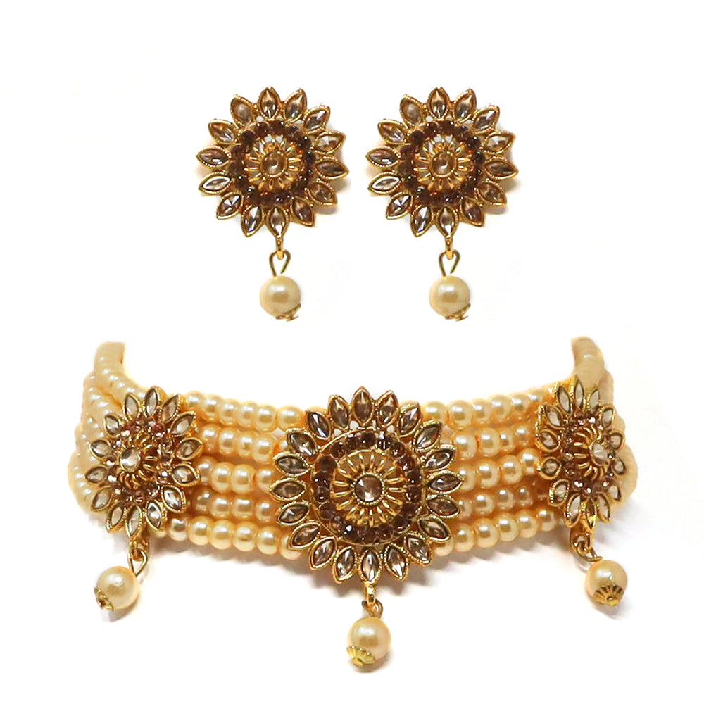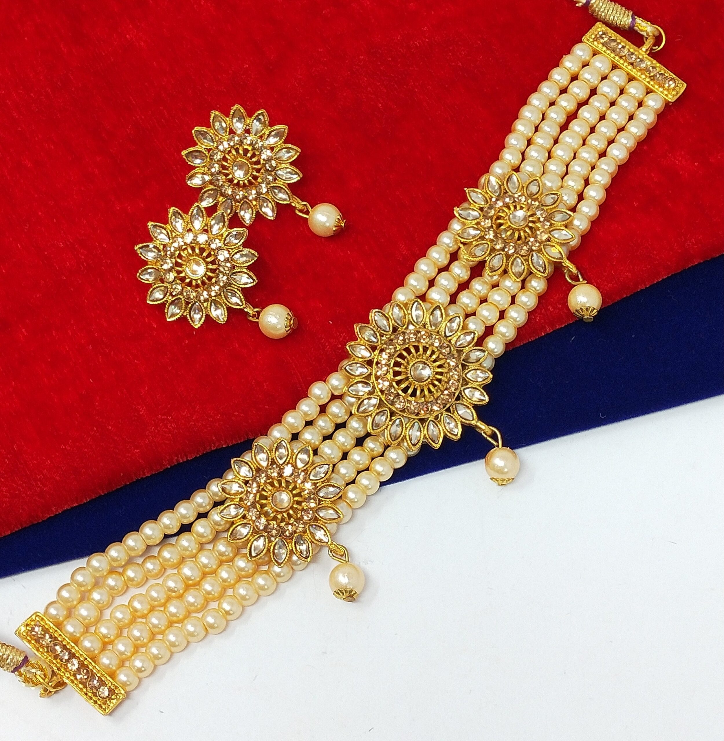 Kundan Studded Multistrand Pearl Choker Necklace Set