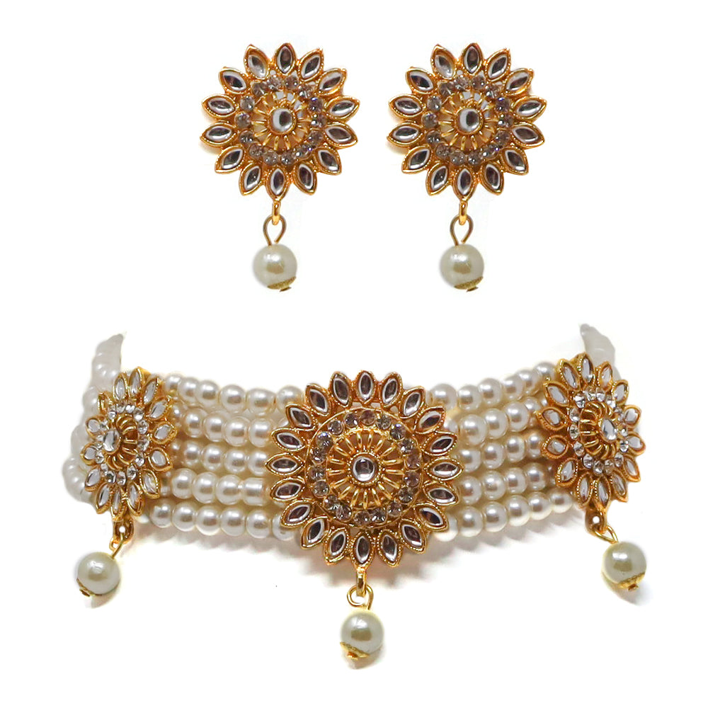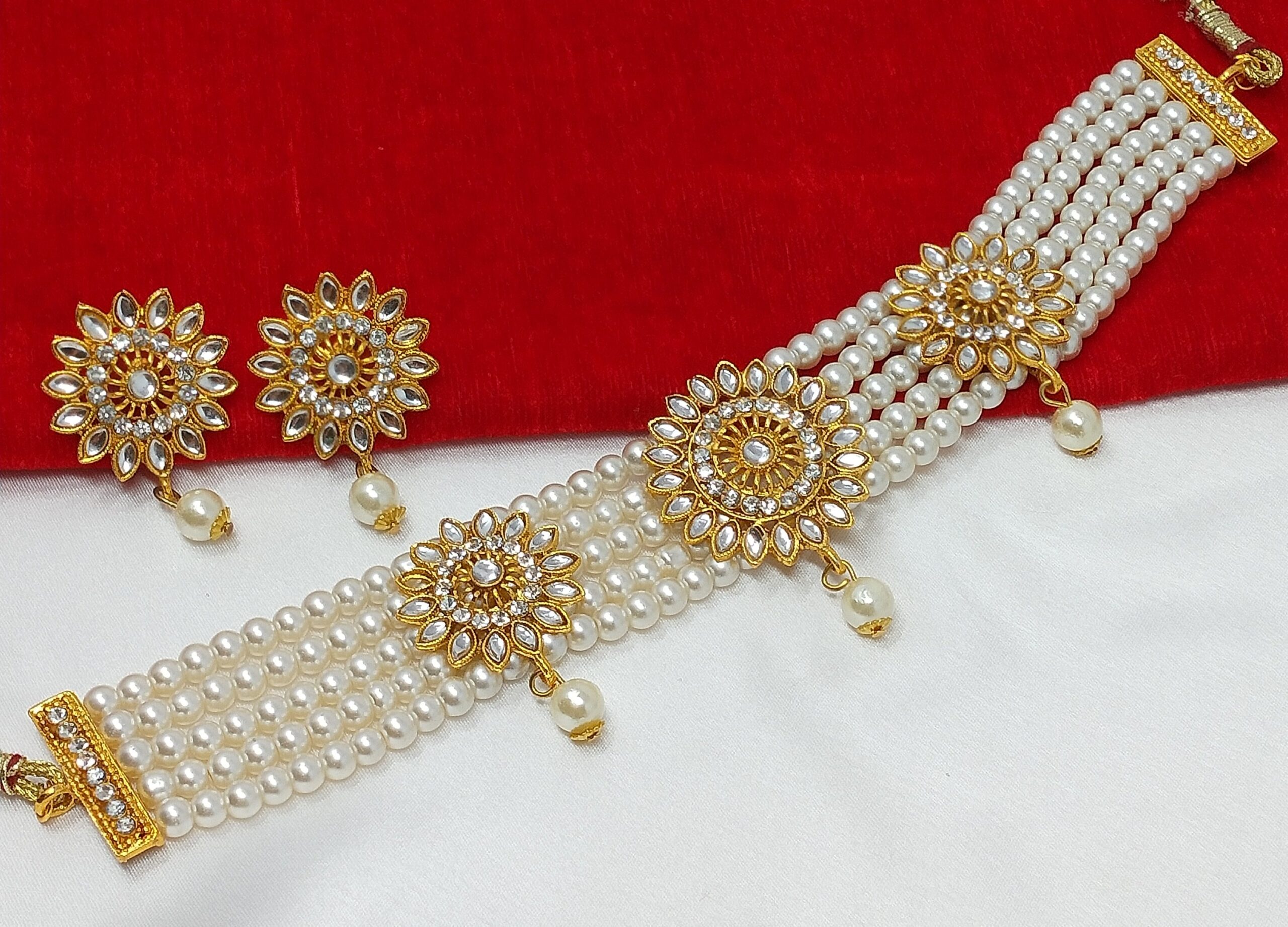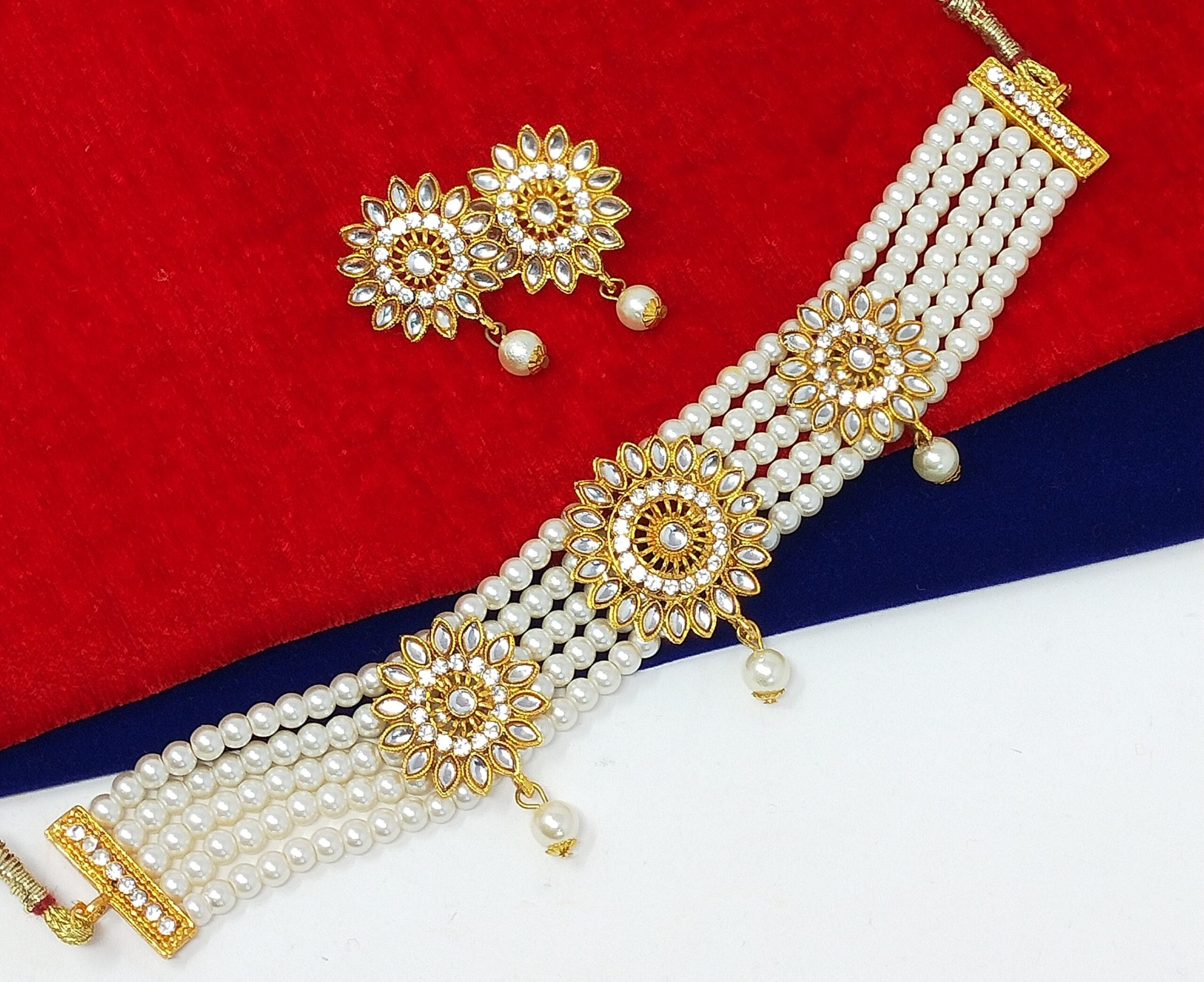 Kundan Studded Multistrand Pearl Choker Necklace Set