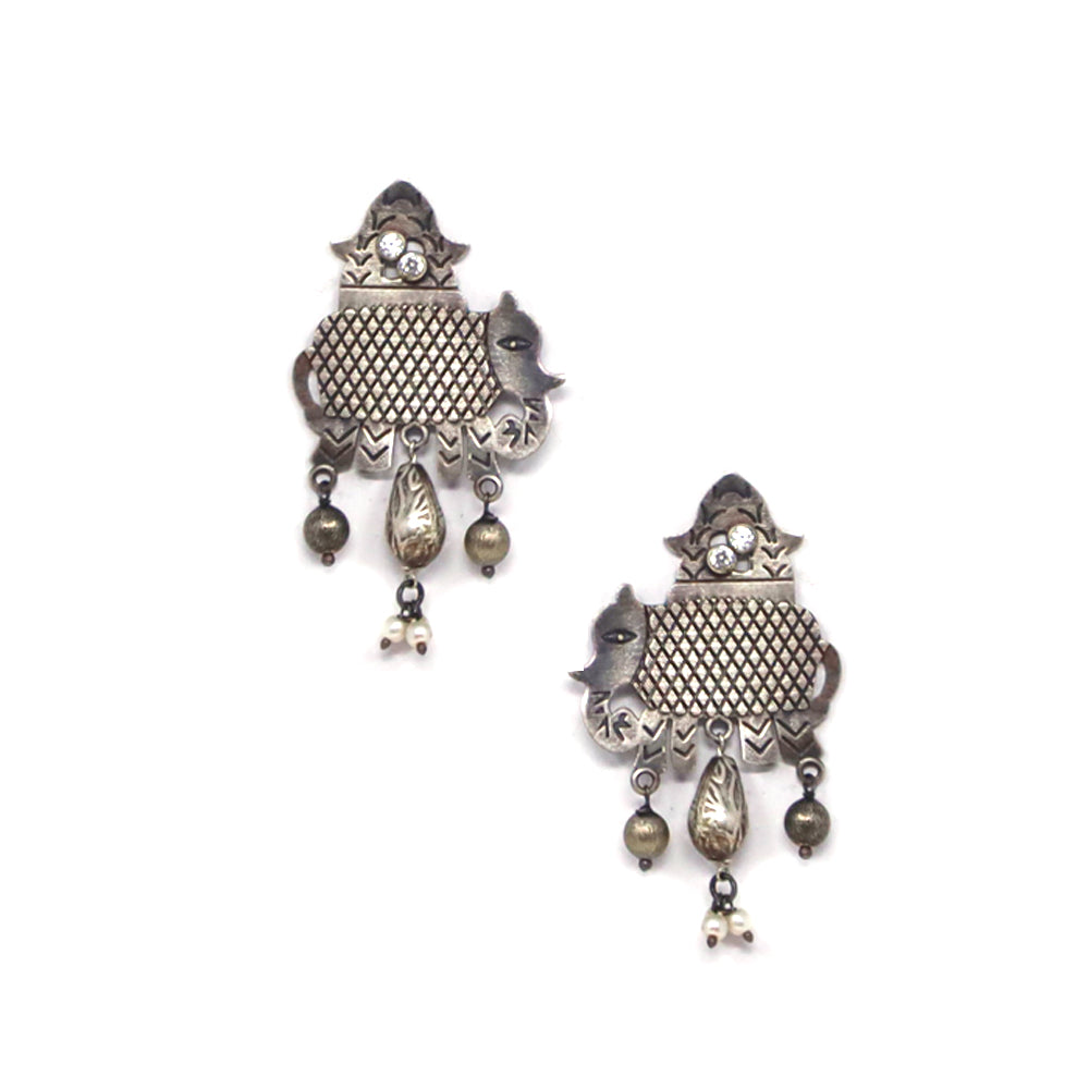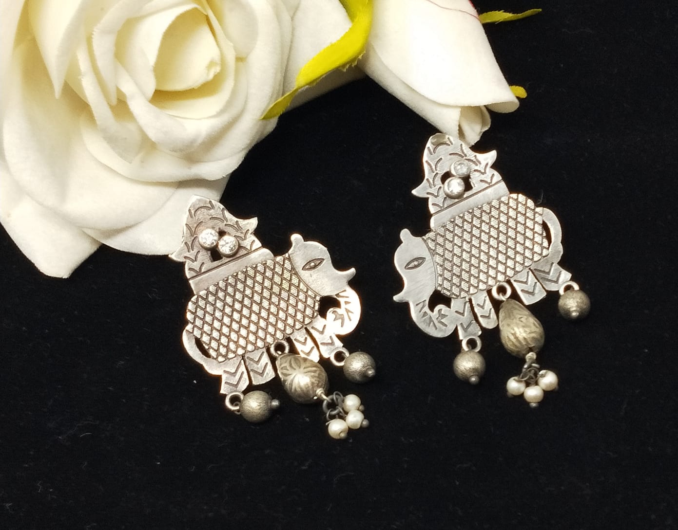 Oxidized German Silver Stylish Elephant Charm Hoop Earrings