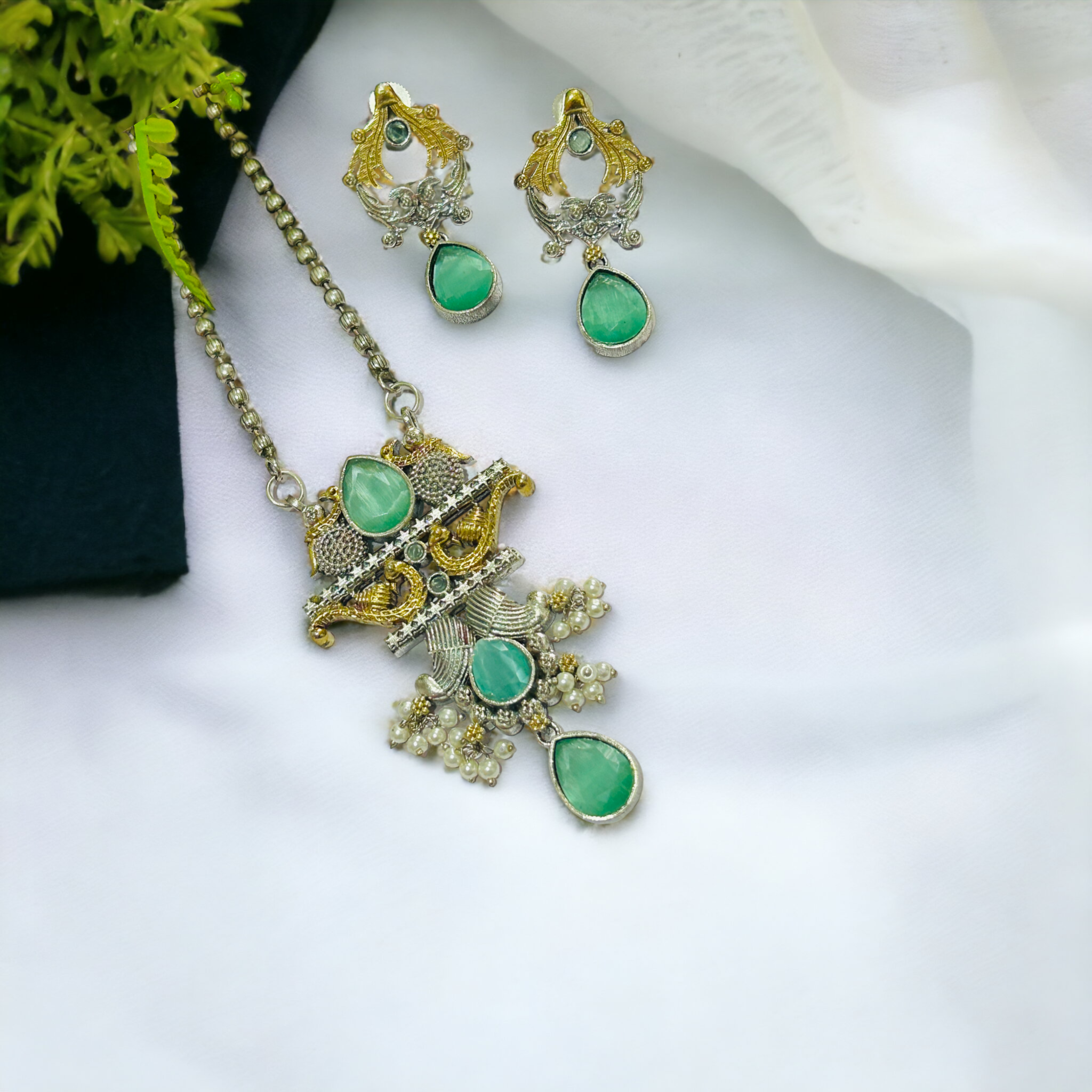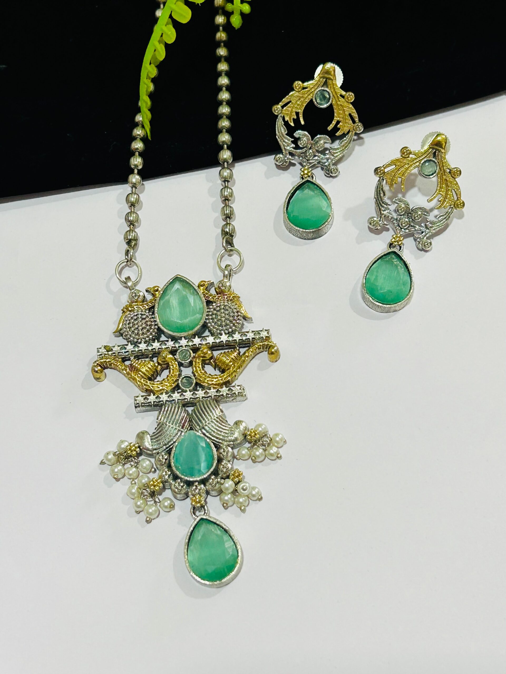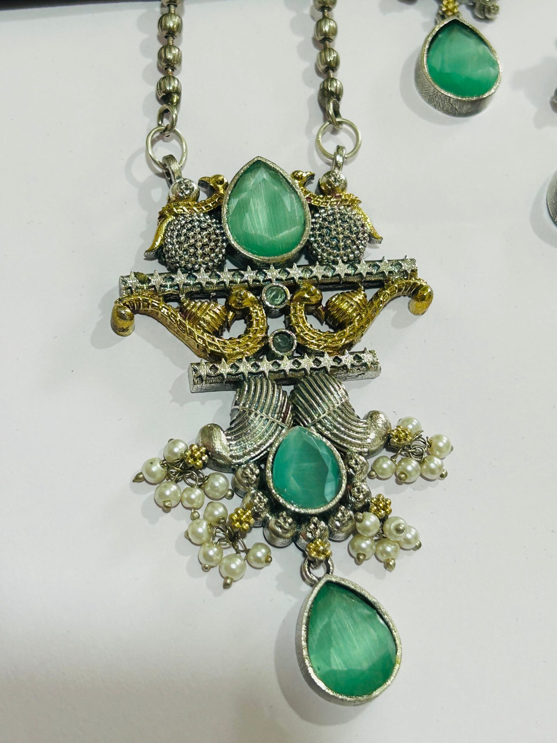 Elevate your style with our Oxidized Long Chain Pendant Necklace, a fusion of vintage charm and modern allure. The meticulously oxidized chain, gracefully draping along the neckline, complements the captivating pendant’s unique design. This statement piece is crafted for those who appreciate distinctive elegance in every detail.
