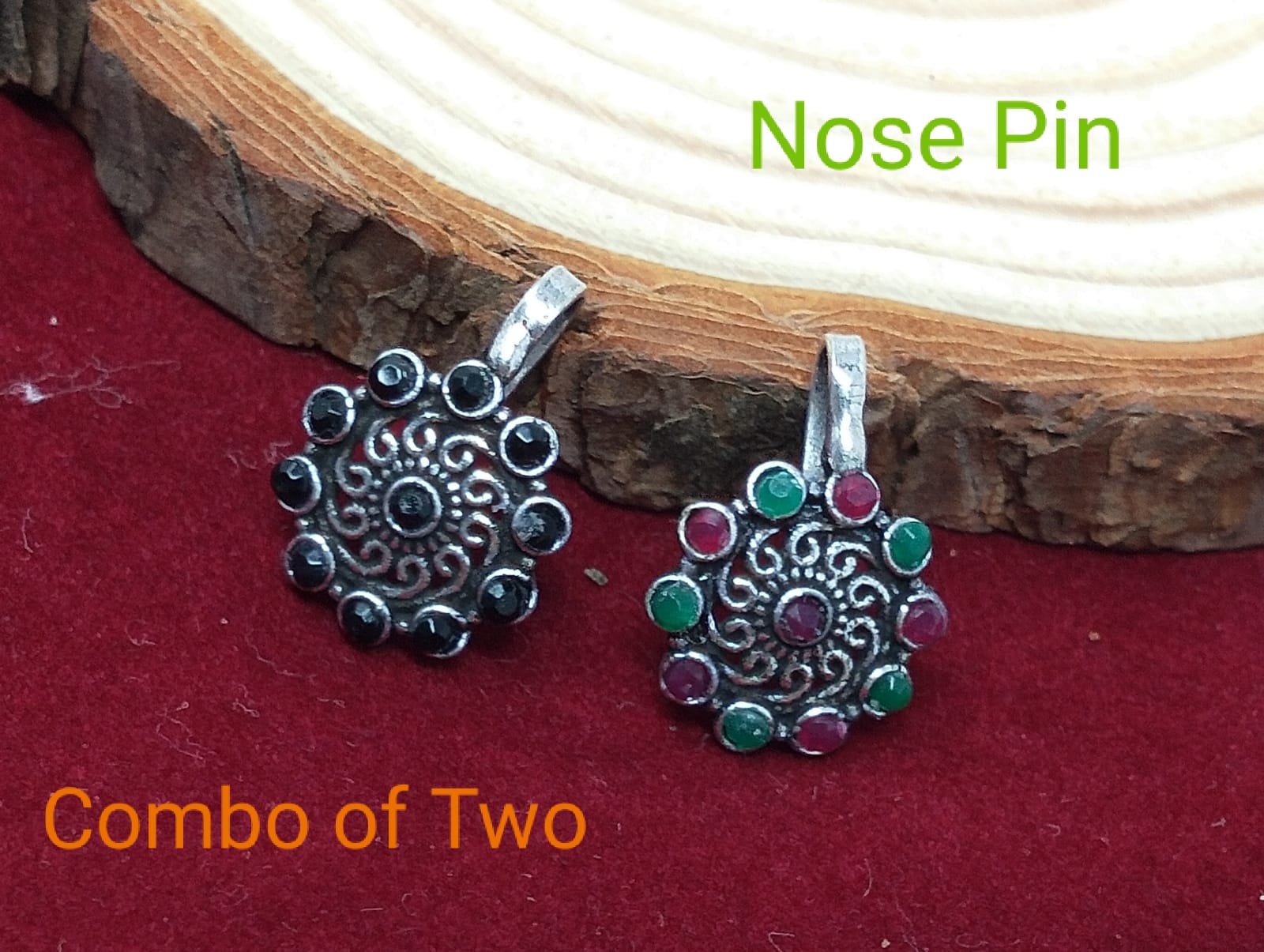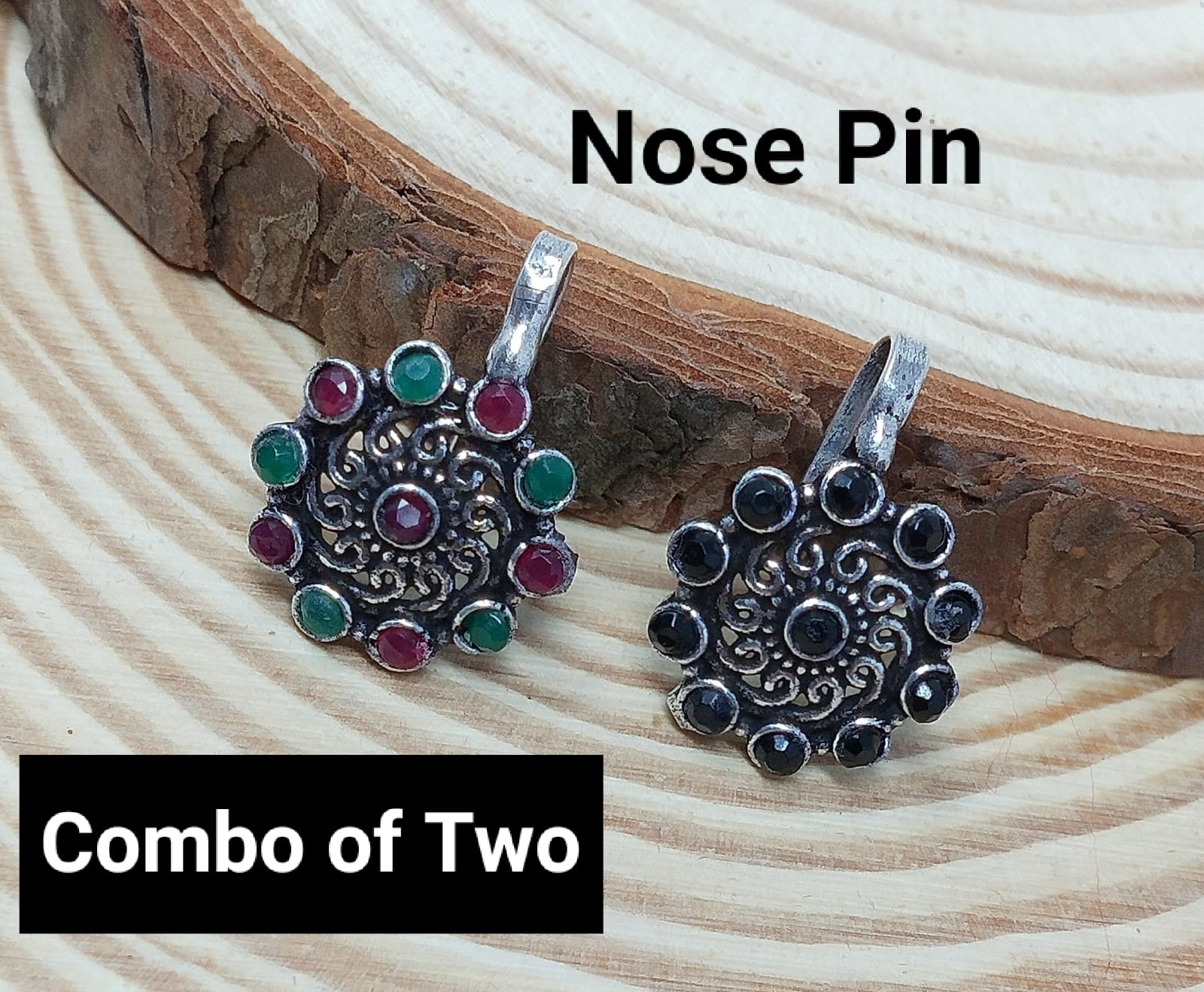 Oxidized Silver Indo Western Fashion Jewellery Nose Pin – Combo of 2