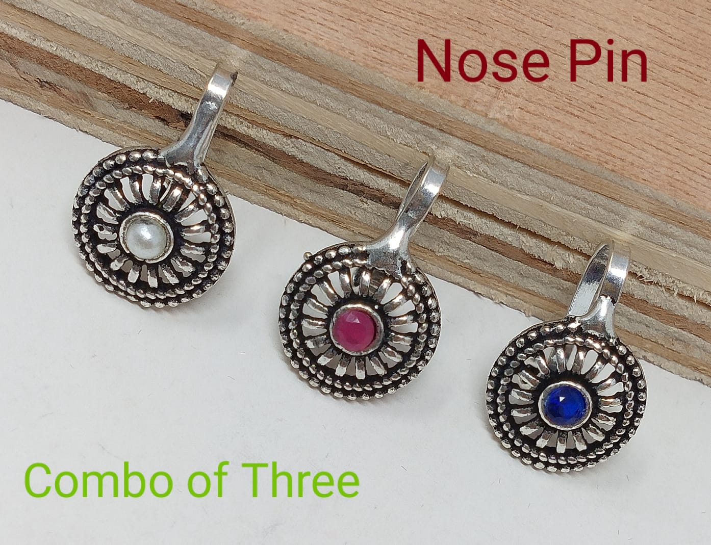 Oxidized Silver Indo Western Fashion Jewellery Nose Pin – Combo of 3