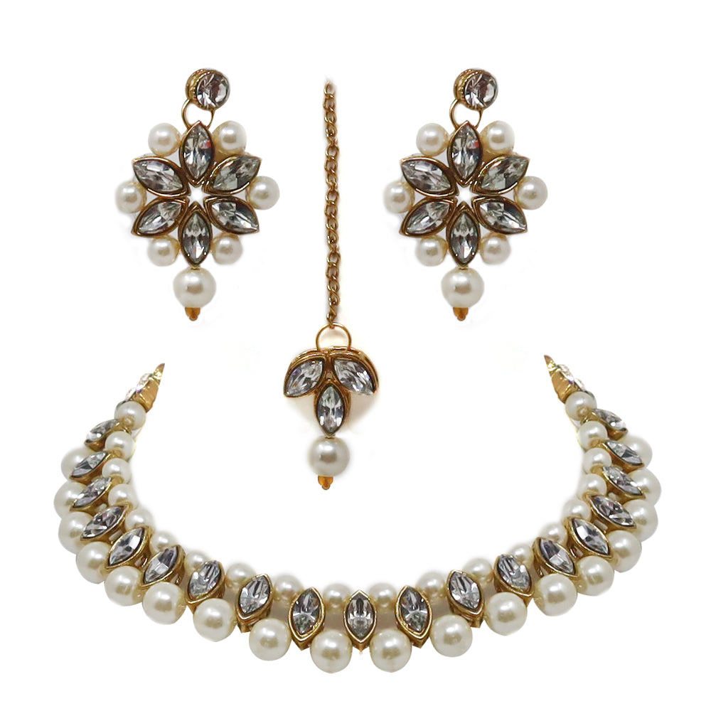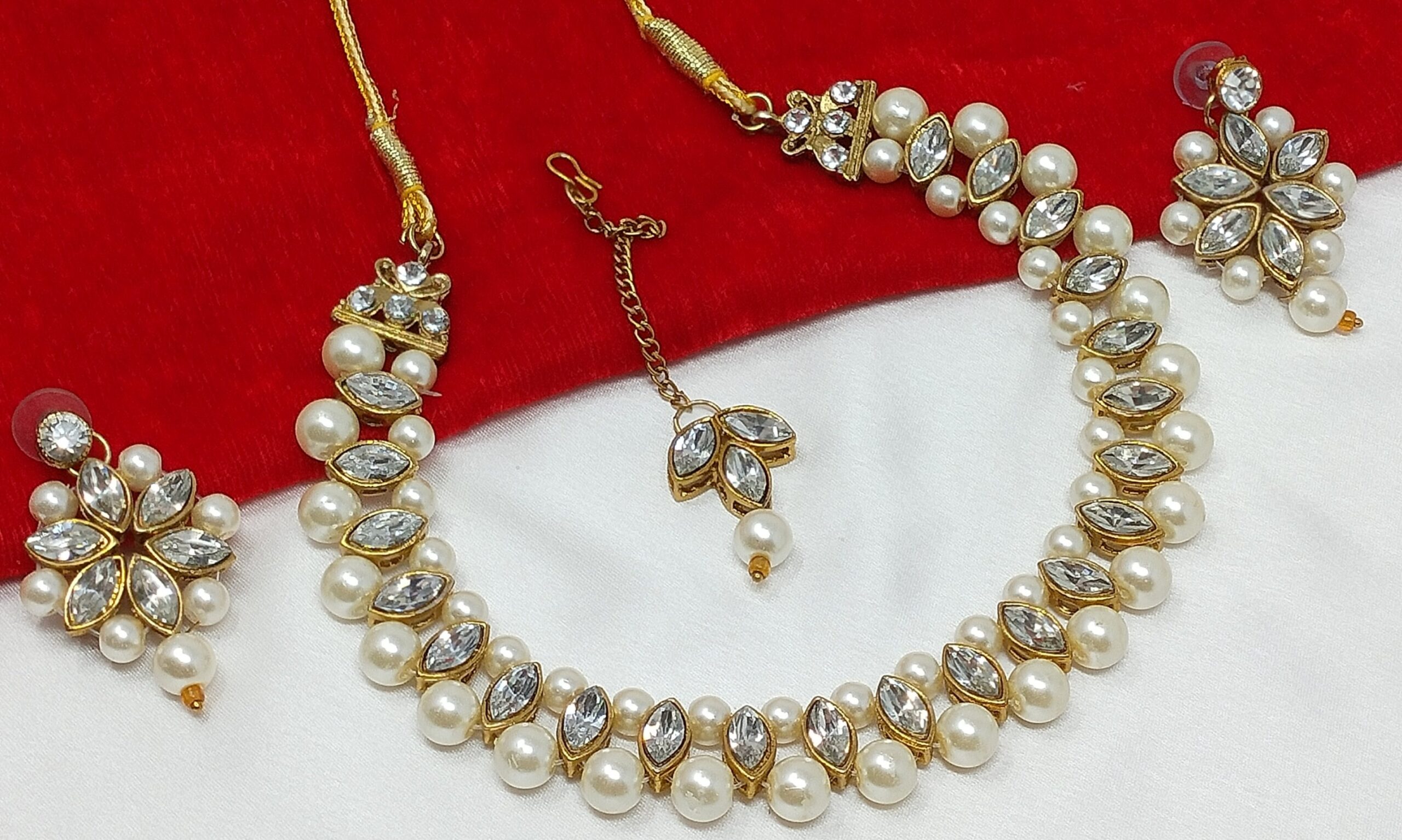 Introducing our enchanting Pearl Choker Set, a symbol of refined elegance and classic beauty. This exquisite ensemble features a stunning choker necklace adorned with lustrous pearls that gracefully accentuate your neckline.