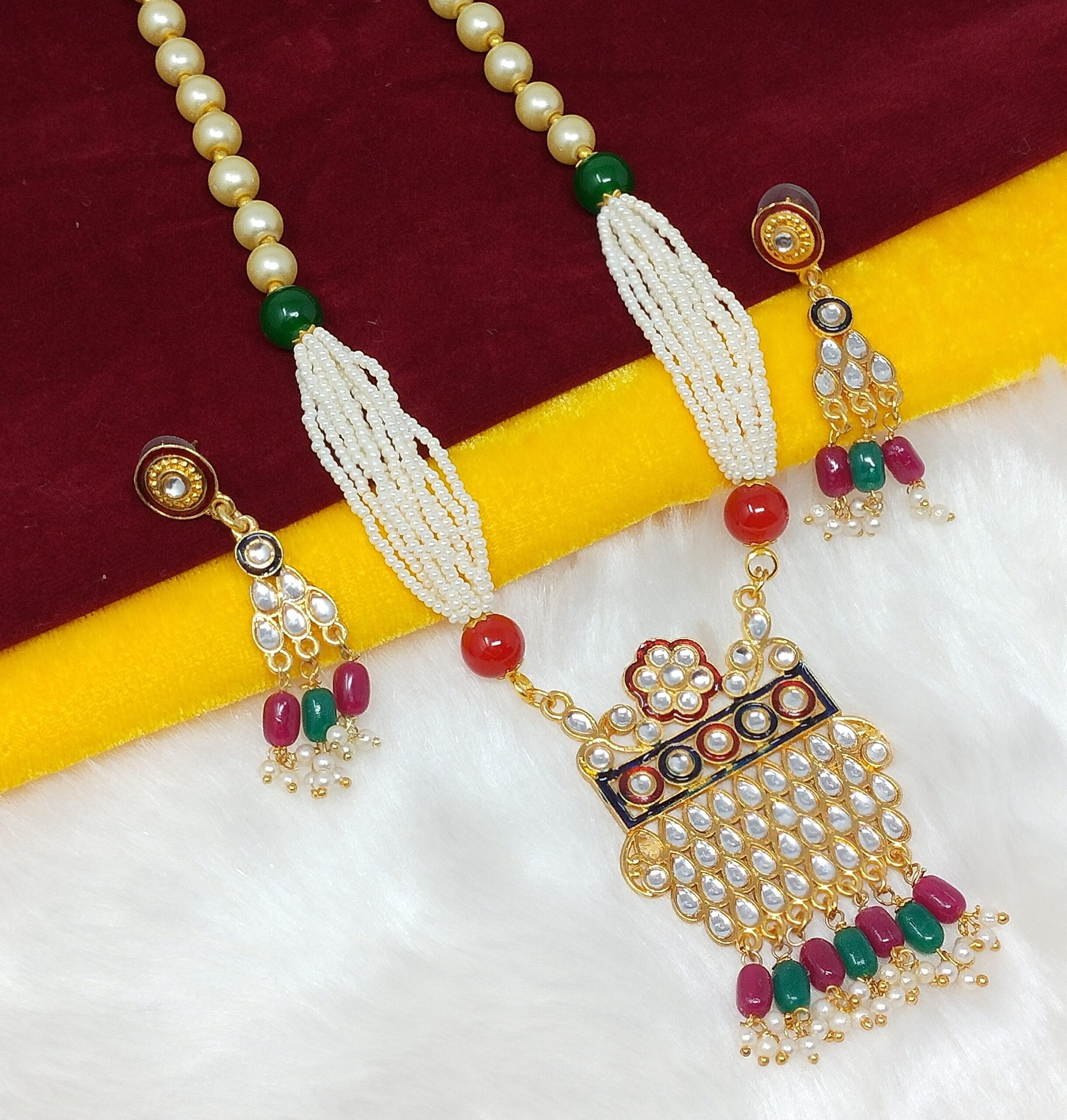 Pearl Kundan Long Jewelry Set