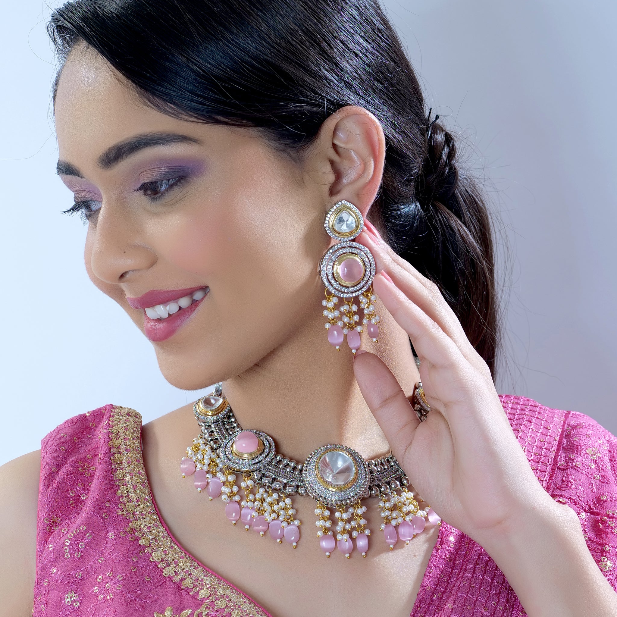 Pink Pearl Uncut Polki Kundan Jewelry Set – Elegant & Enchanting Accessories for Timeless Style