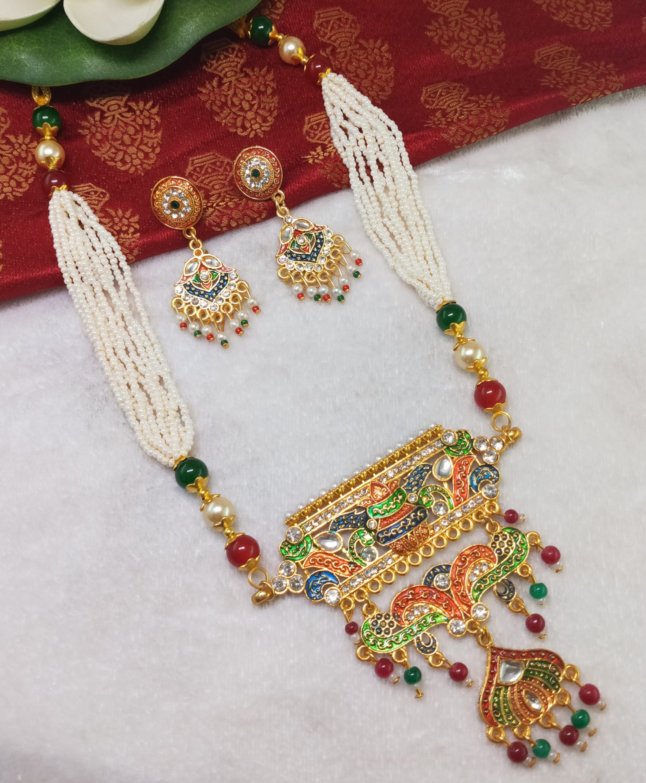 Introducing the Rajputi Pearl Jewelry Set – a timeless symbol of grace and regal elegance. Crafted with meticulous attention to detail, this exquisite set showcases the splendor of Rajputi culture and captures the essence of tradition in every piece. Elevate your style and embrace the heritage of Rajasthan with this stunning jewelry ensemble.