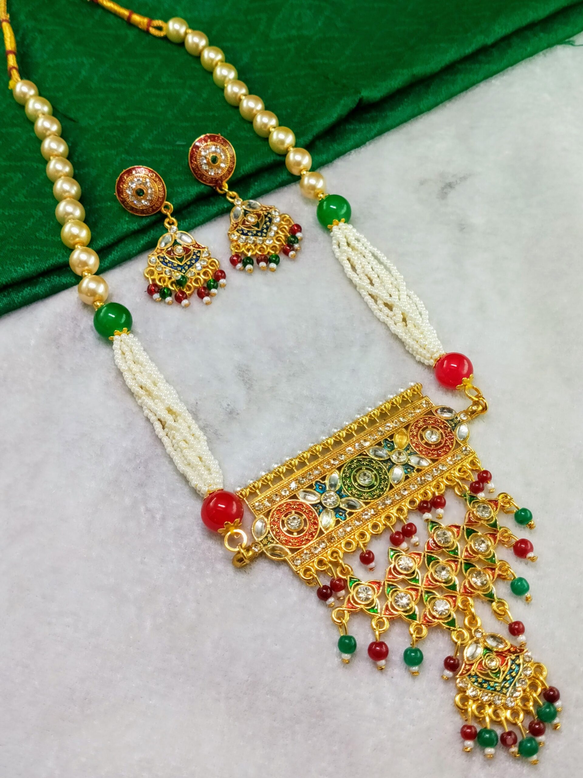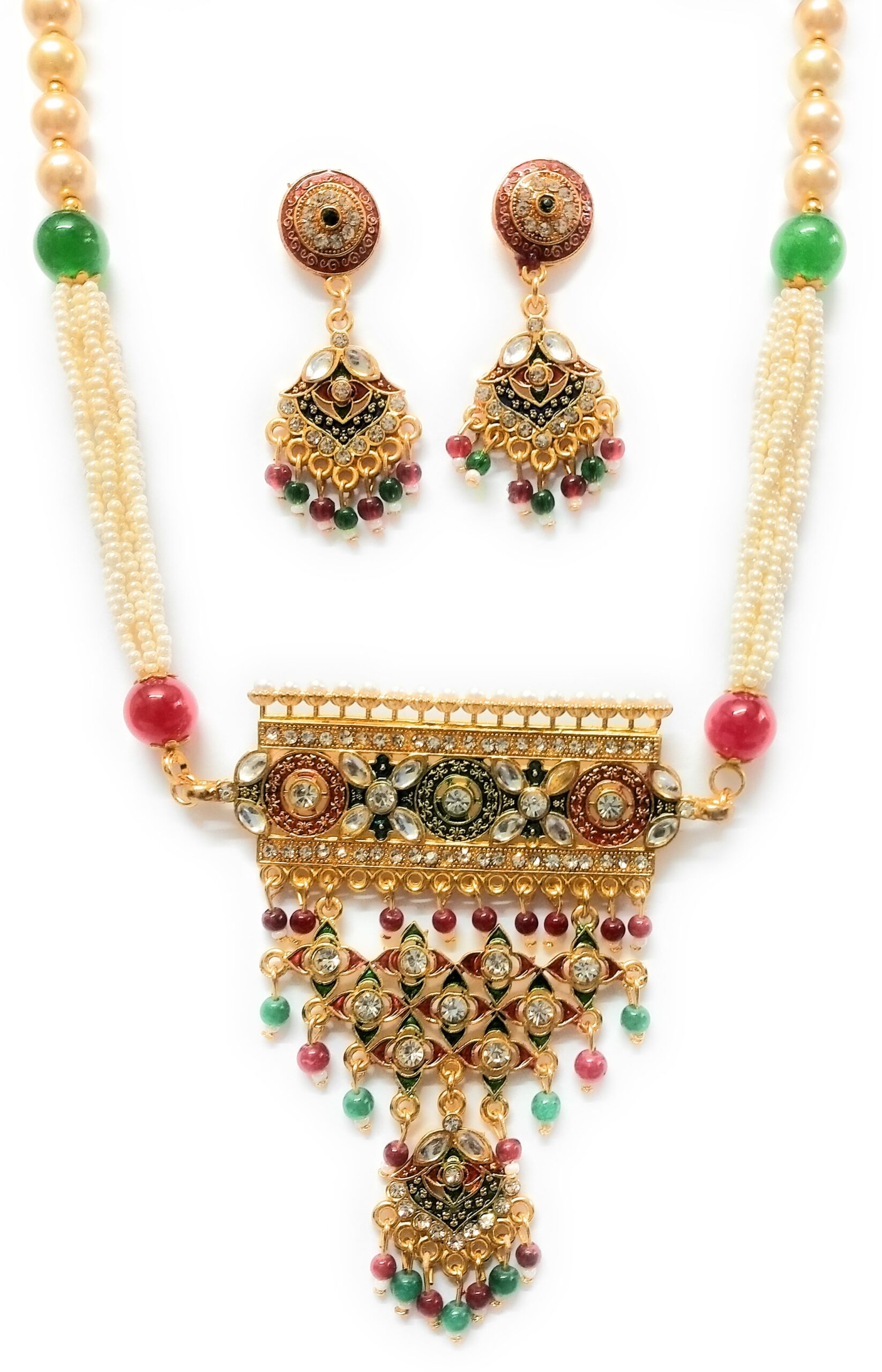 Introducing the Rajputi Pearl Jewelry Set – a timeless symbol of grace and regal elegance. Crafted with meticulous attention to detail, this exquisite set showcases the splendor of Rajputi culture and captures the essence of tradition in every piece. Elevate your style and embrace the heritage of Rajasthan with this stunning jewelry ensemble.